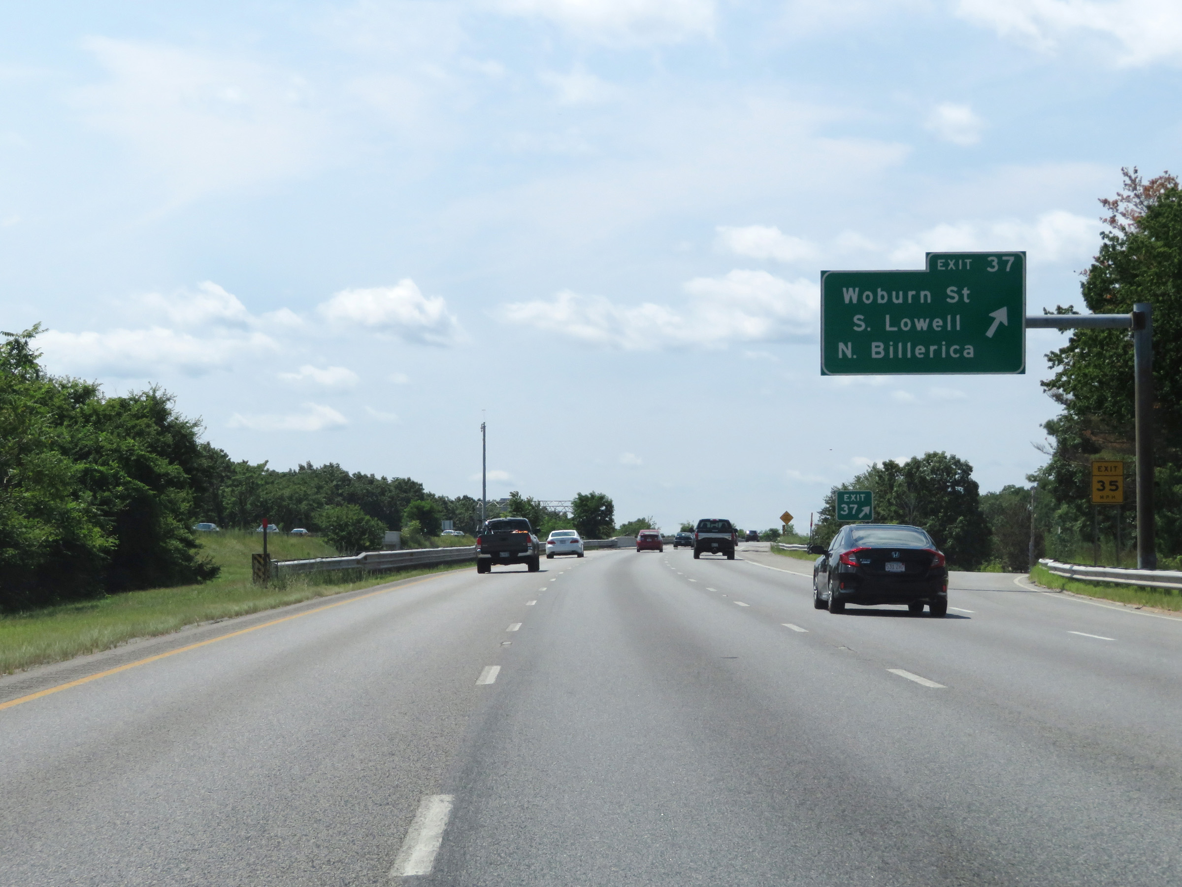 Interstate 495 South at Exit 37: Woburn St / South Lowell / North Billerica (Photo taken 8/6/17). |