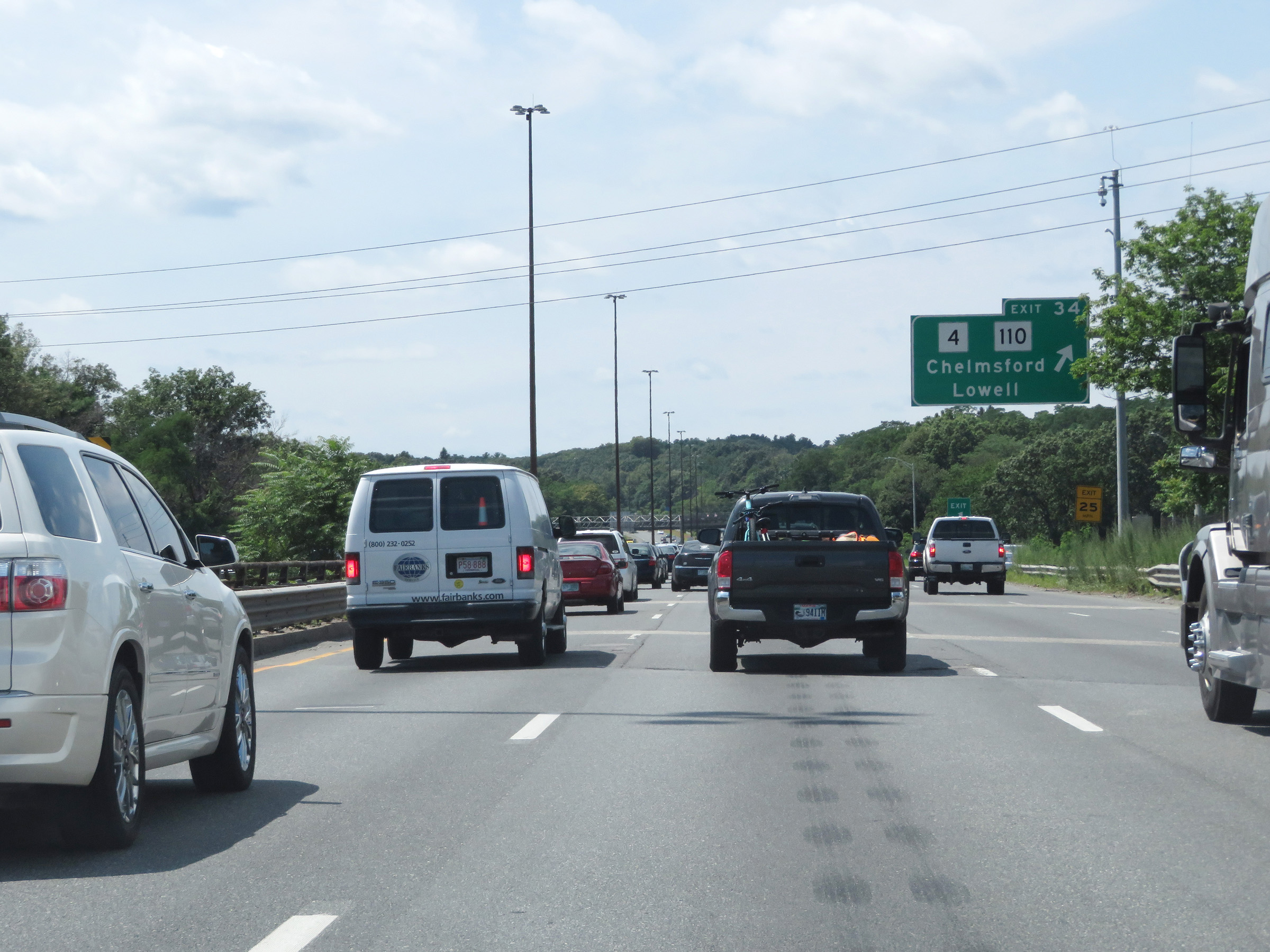 Interstate 495 South at Exit 34: MA 4 / MA 110 - Chelmsford / Lowell (Photo taken 8/6/17). |