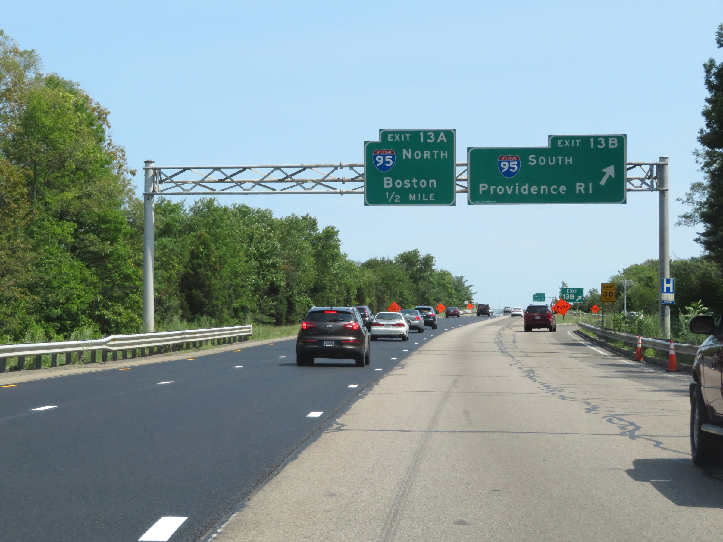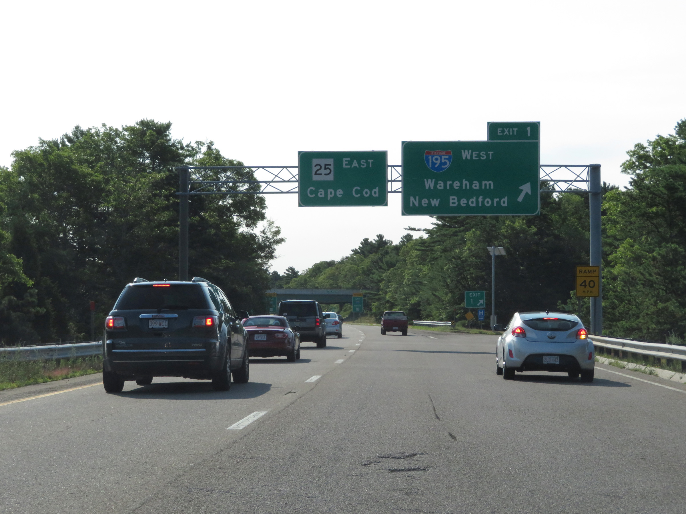 Traffic to Boston should use Interstate 93 South via Exit 40A. (Photo taken 8/6/17). |