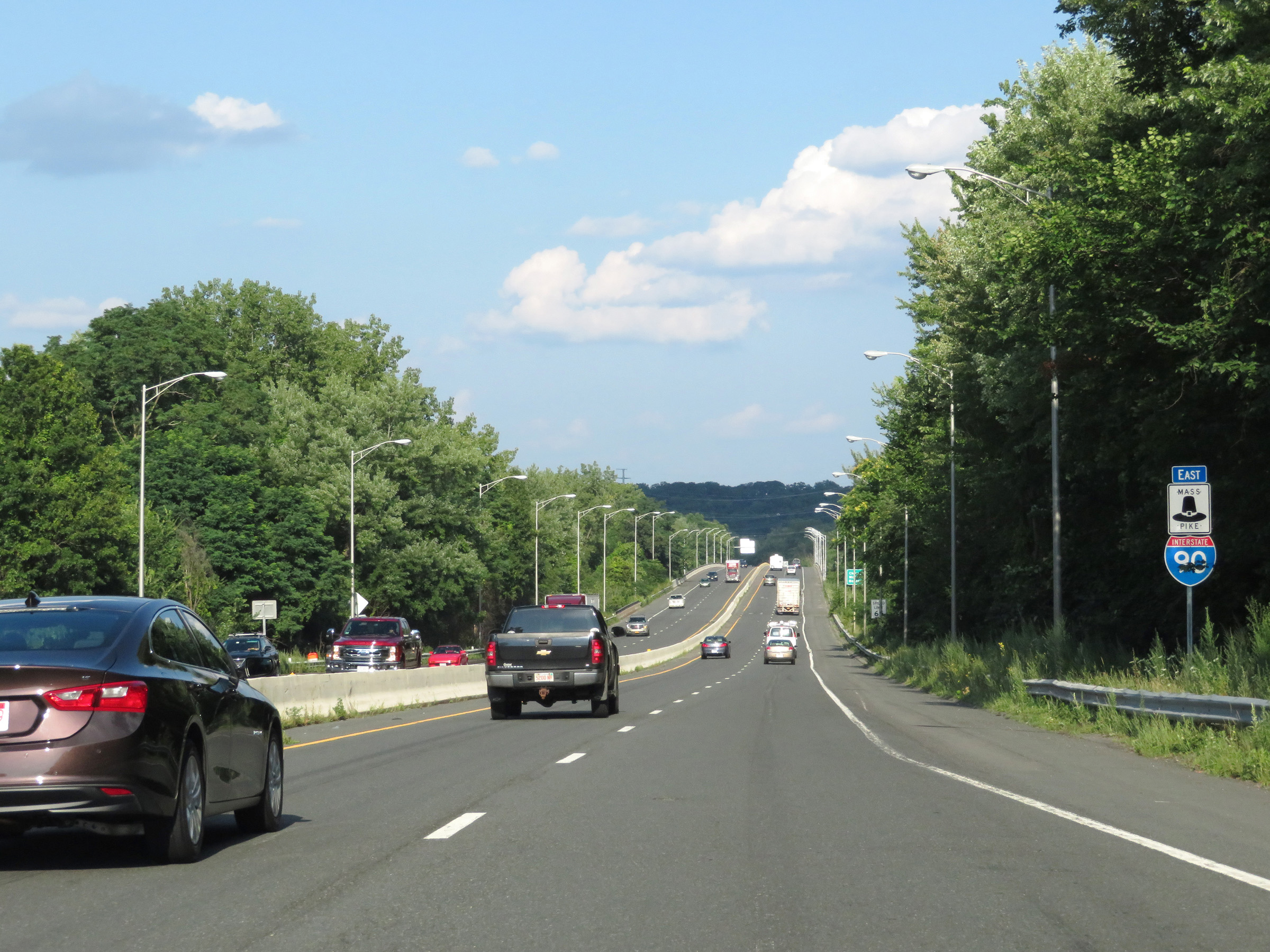 View on Interstate 90 East (Mass Pike) at mile marker 137.4. (Photo taken 8/10/17). |