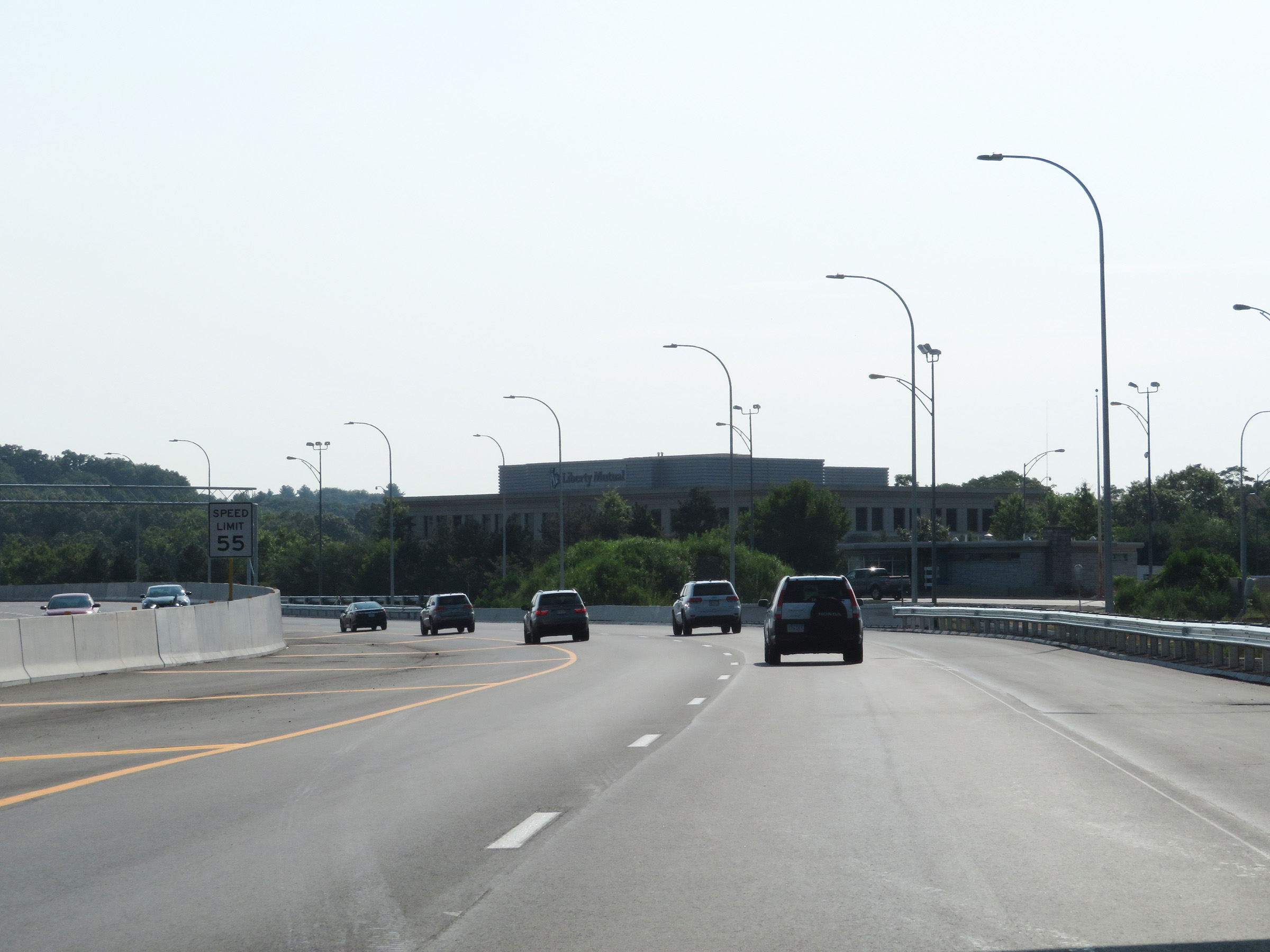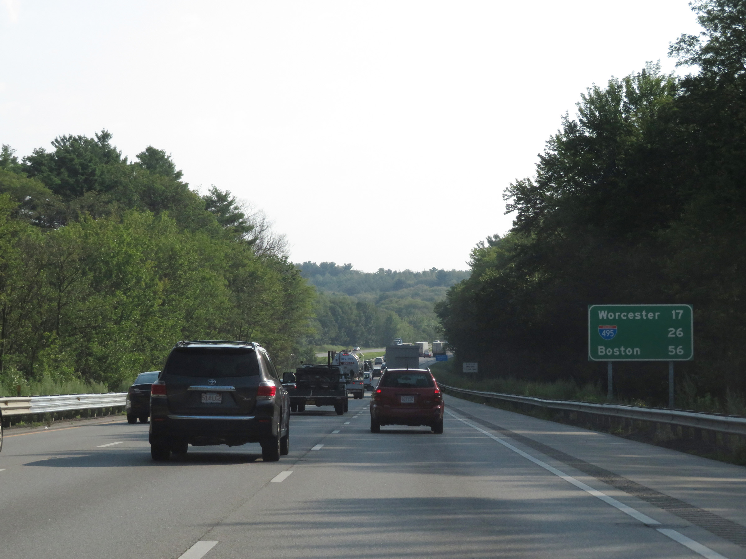 View on Interstate 90 East (Mass Pike) in Boston. (Photo taken 8/10/17). |