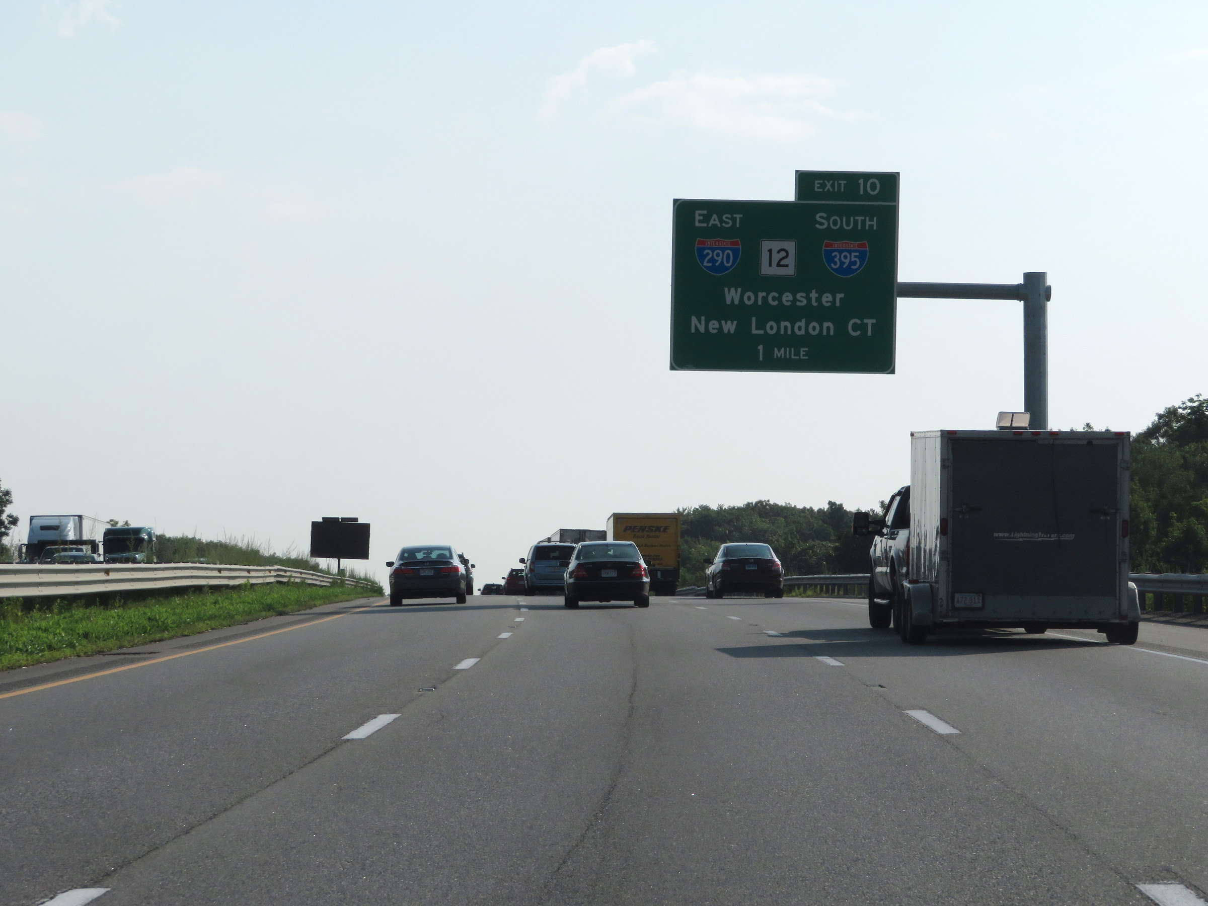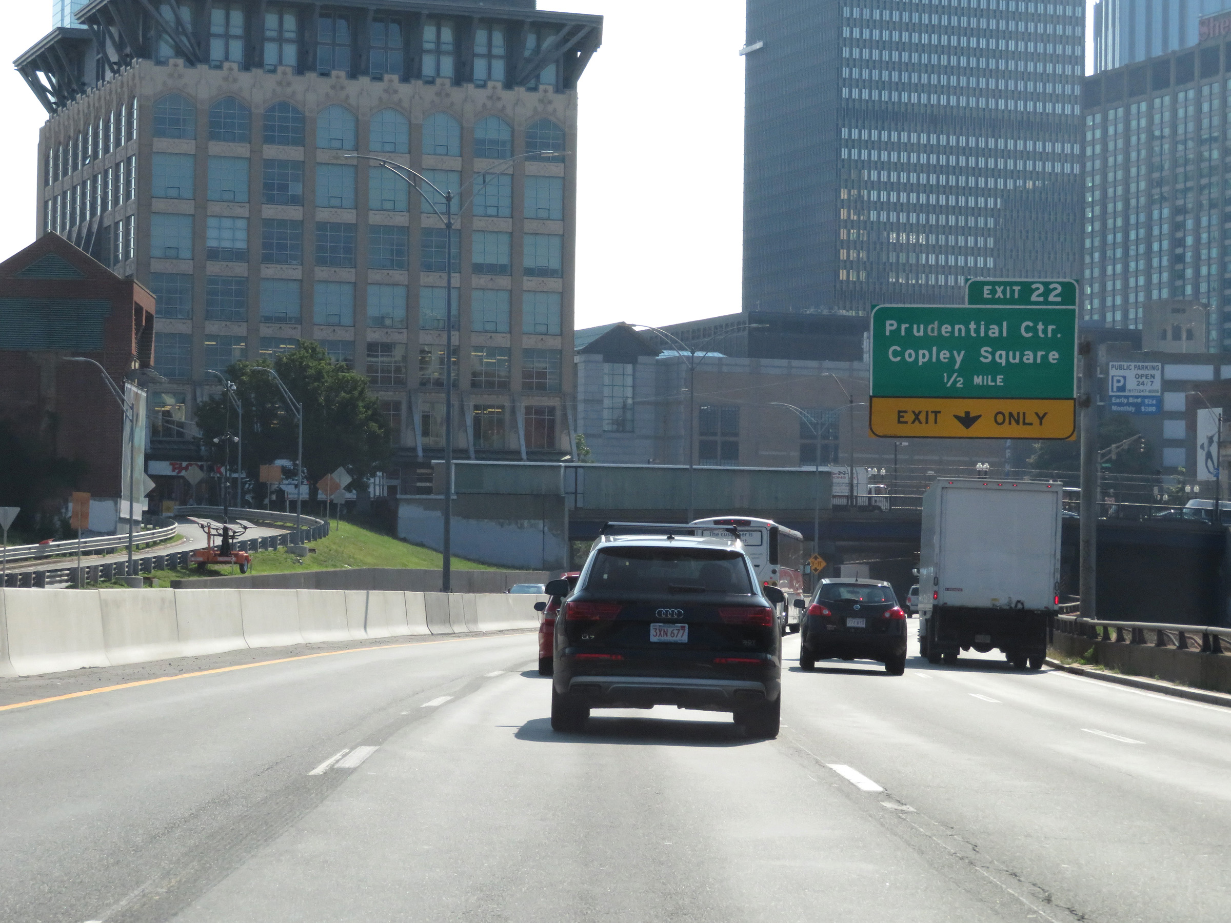 Interstate 90 East (Mass Pike) at Exit 22: Prudential Center / Copley Square (Photo taken 8/10/17). |