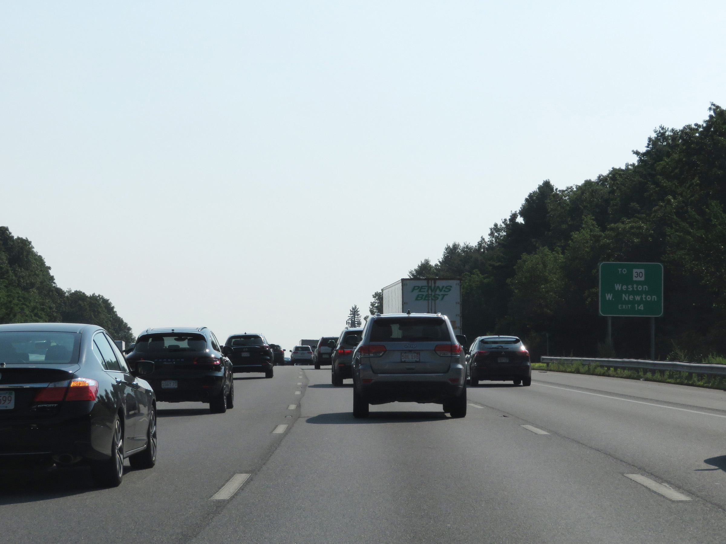 Take Exit 14 to MA 30 toward Weston and West Newton. (Photo taken 8/10/17). |
