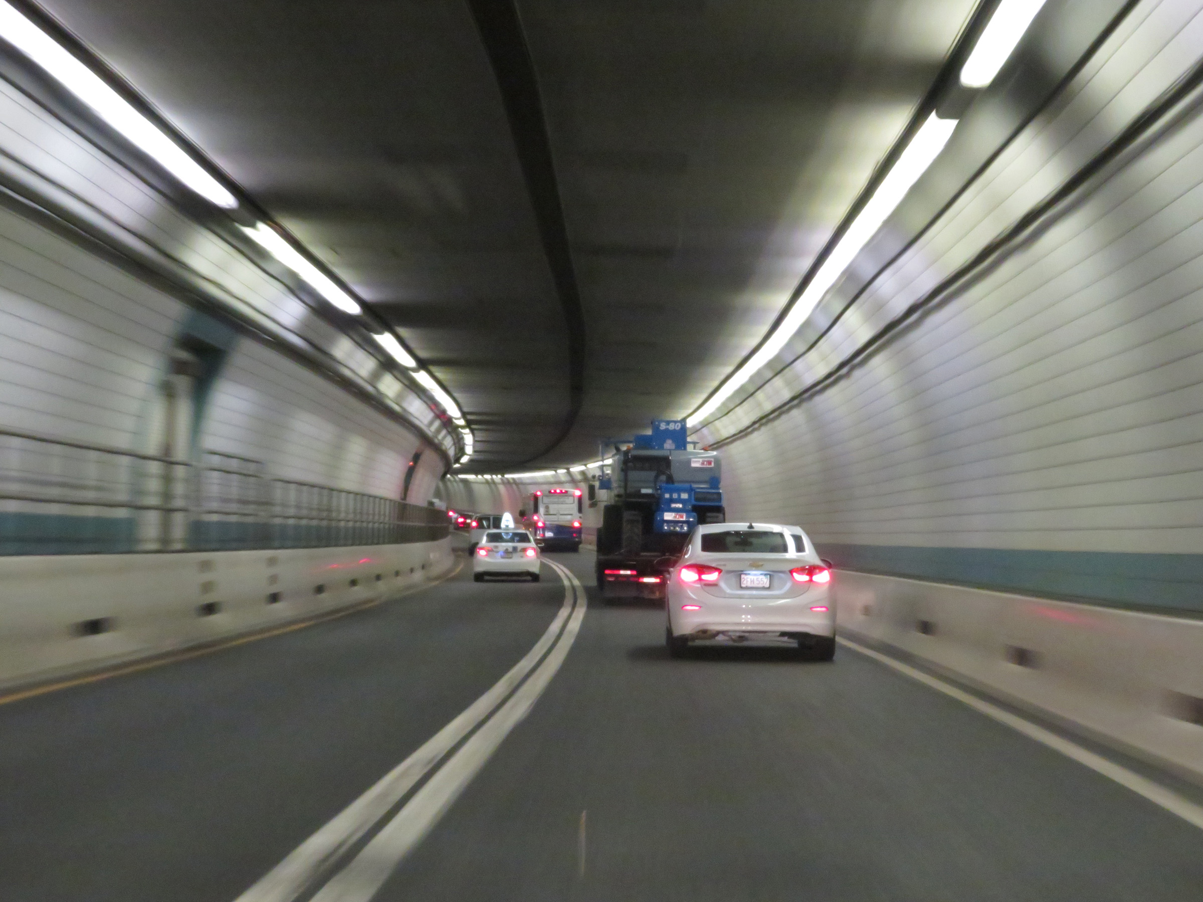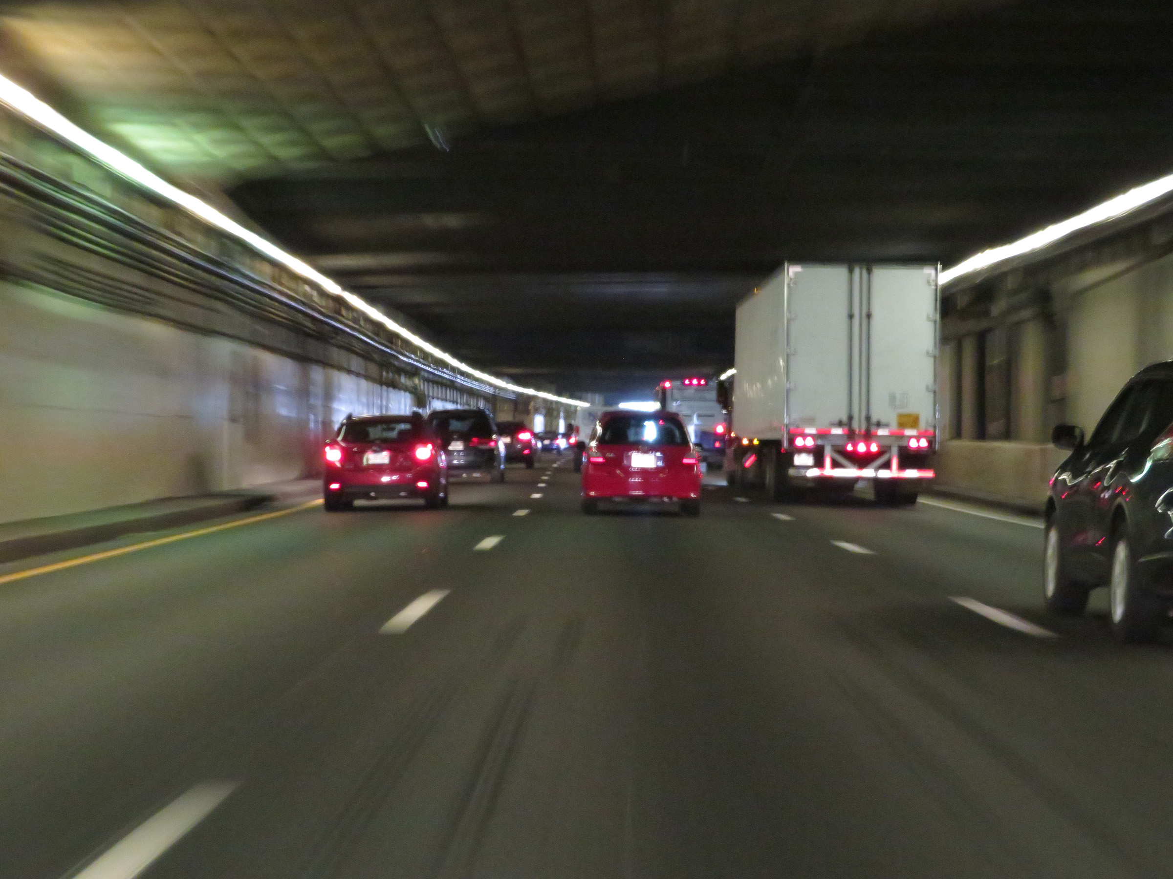 Interstate 90 East (Mass Pike) inside the Ted Williams Tunnel under Boston Harbor. (Photo taken 8/10/17). |