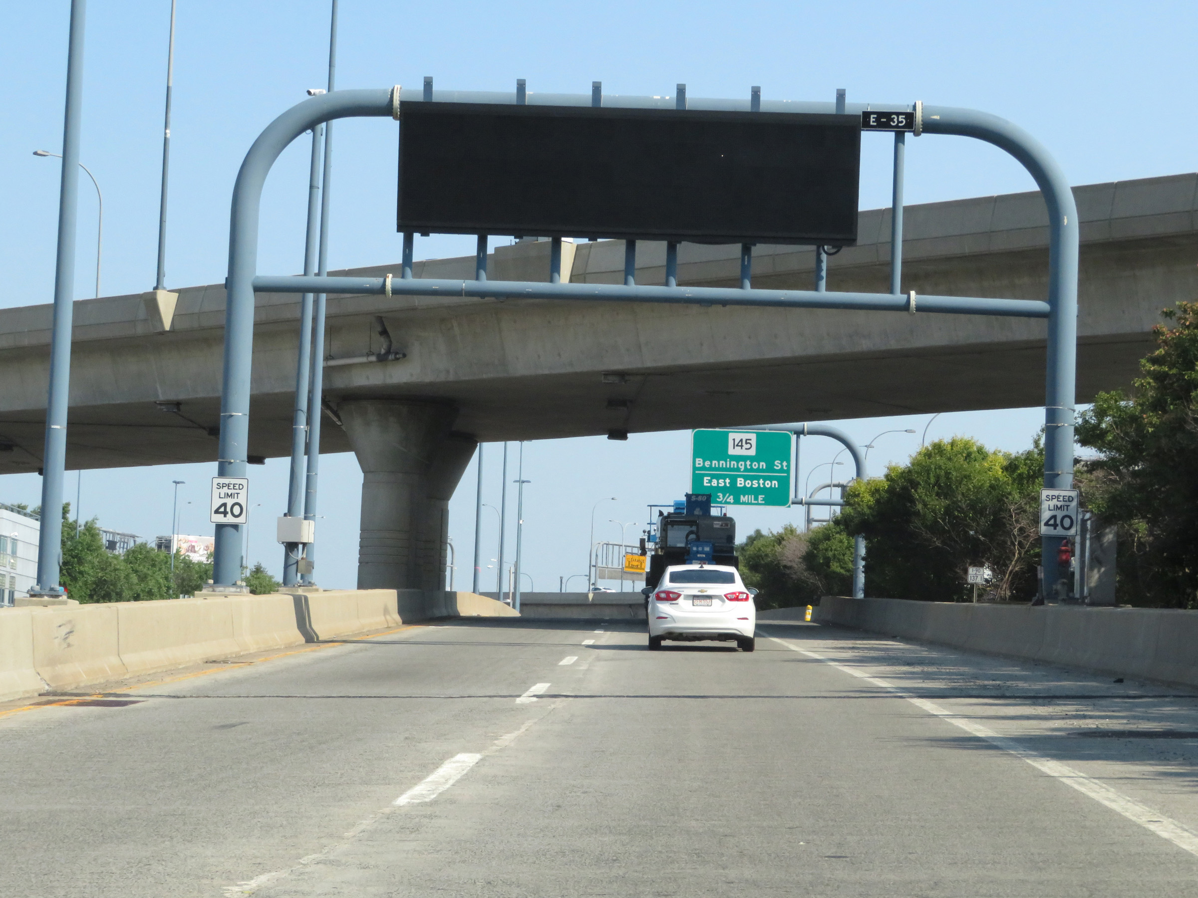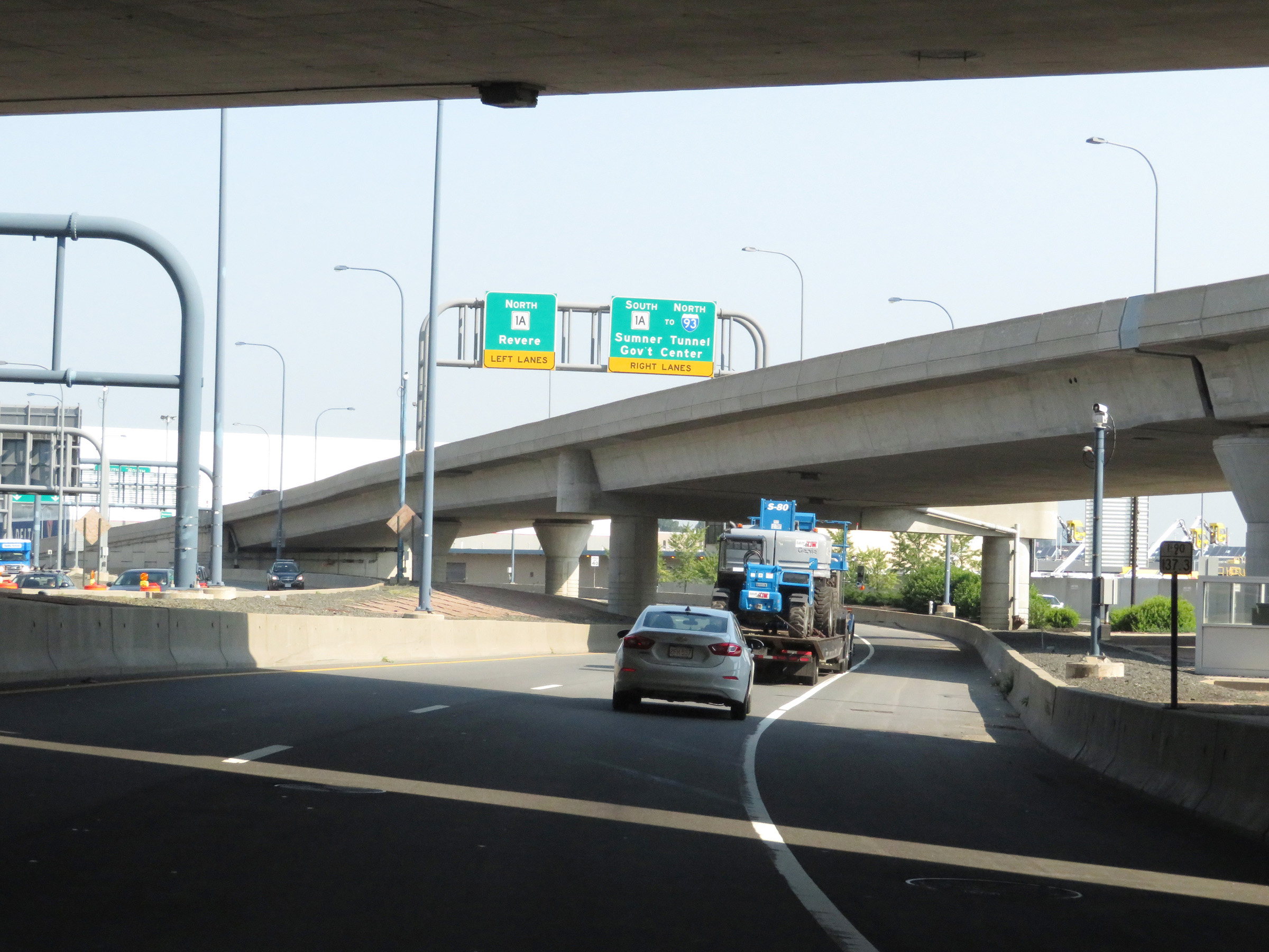 Interstate 90 East as it nears its national eastern terminus at the junction of MA 1A in Boston. (Photo taken 8/10/17). |