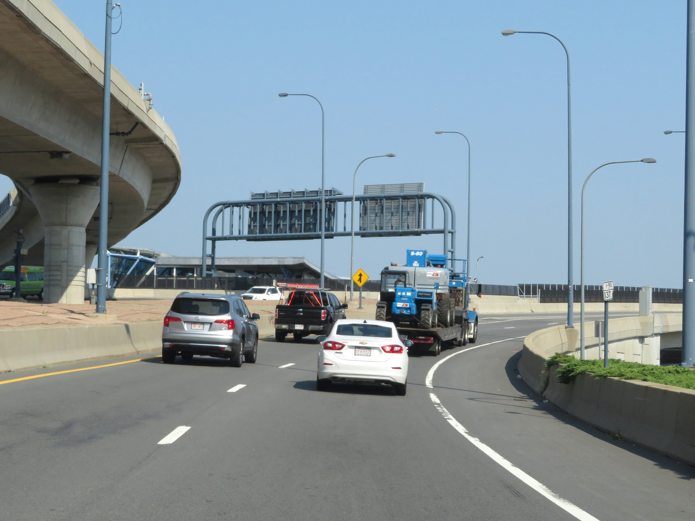Interstate 90 East (Mass Pike) at Exit 26: Logan Airport (Photo taken 8/10/17). |