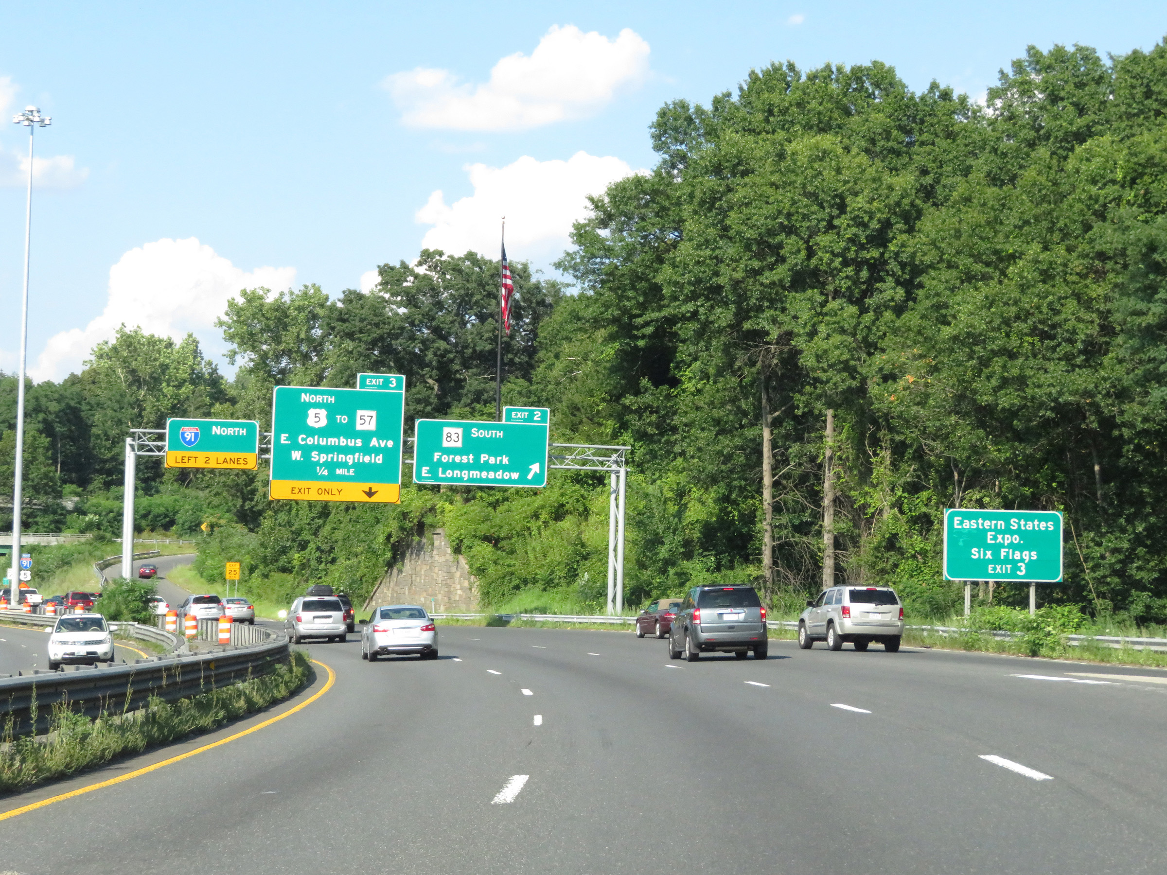 Interstate 91 North at Exit 2: MA 83 South - Forest Park / East Longmeadow (Photo taken 8/9/17). |