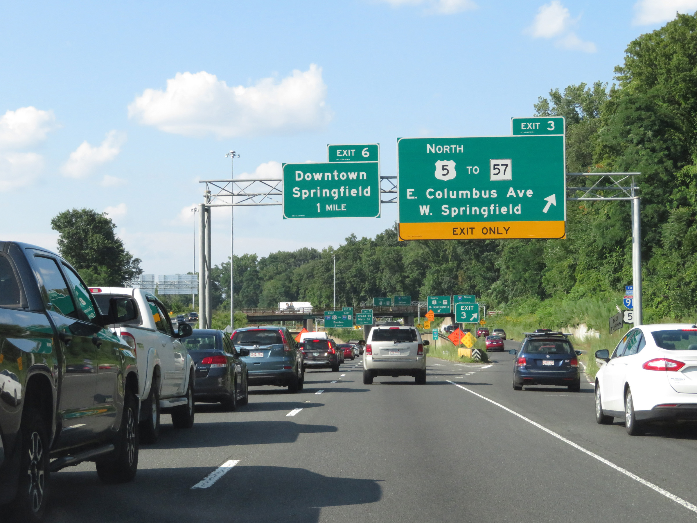 Interstate 91 North at Exit 6: Downtown Springfield (Photo taken 8/9/17). |