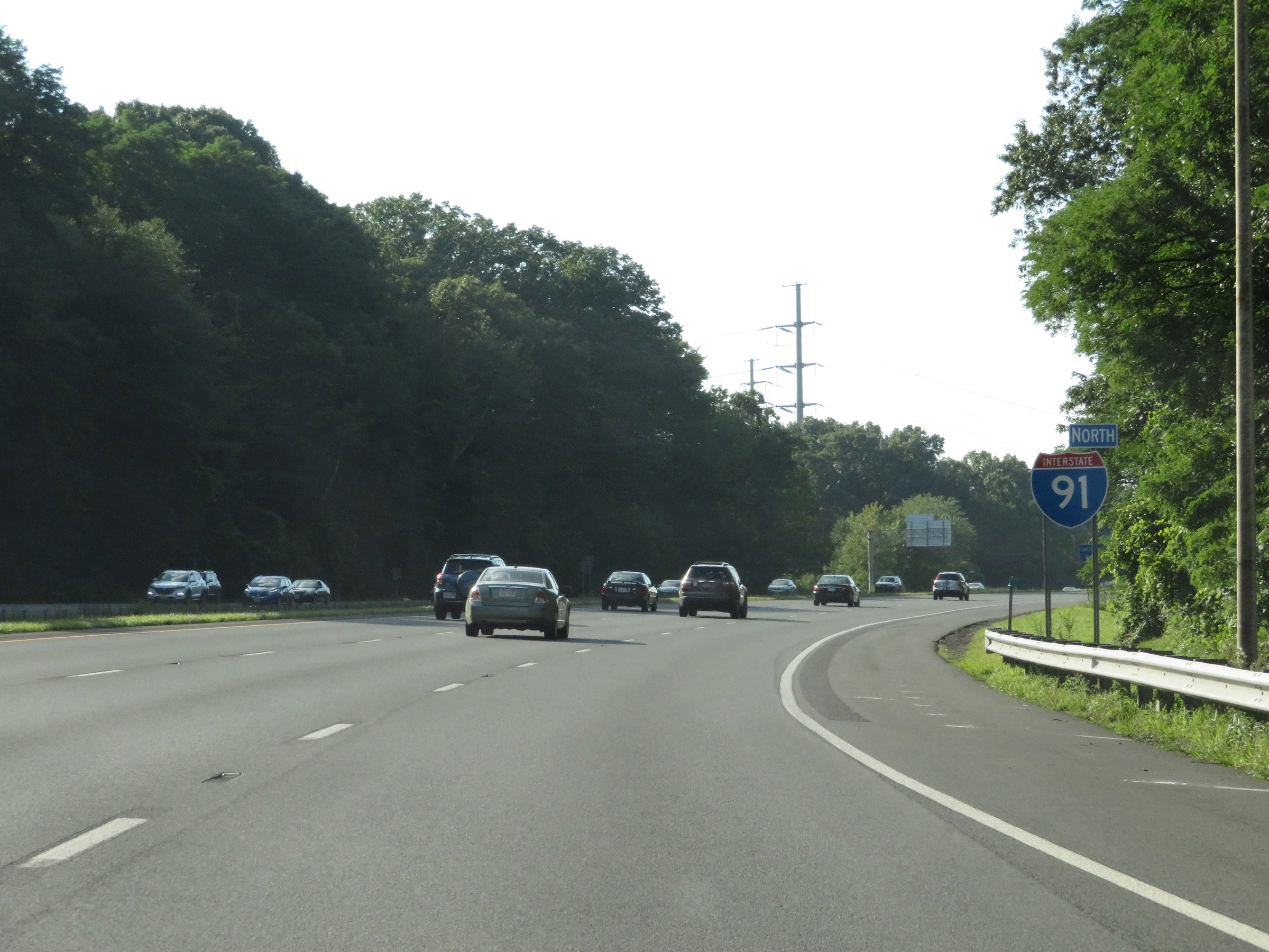 Interstate 91 North reassurance shield. (Photo taken 8/9/17). |