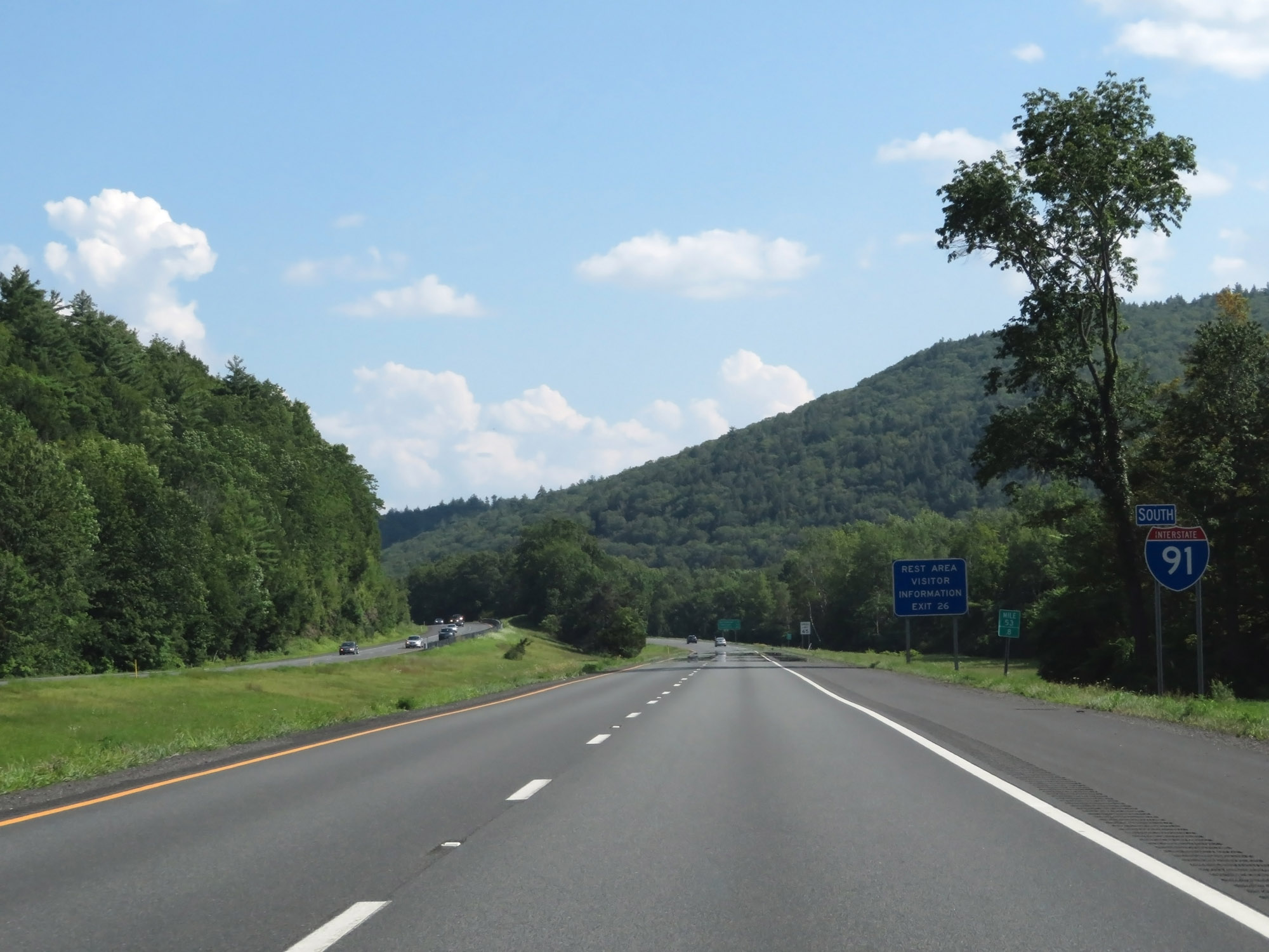 Interstate 91 South entering Hampshire County. (Photo taken 8/9/17). |