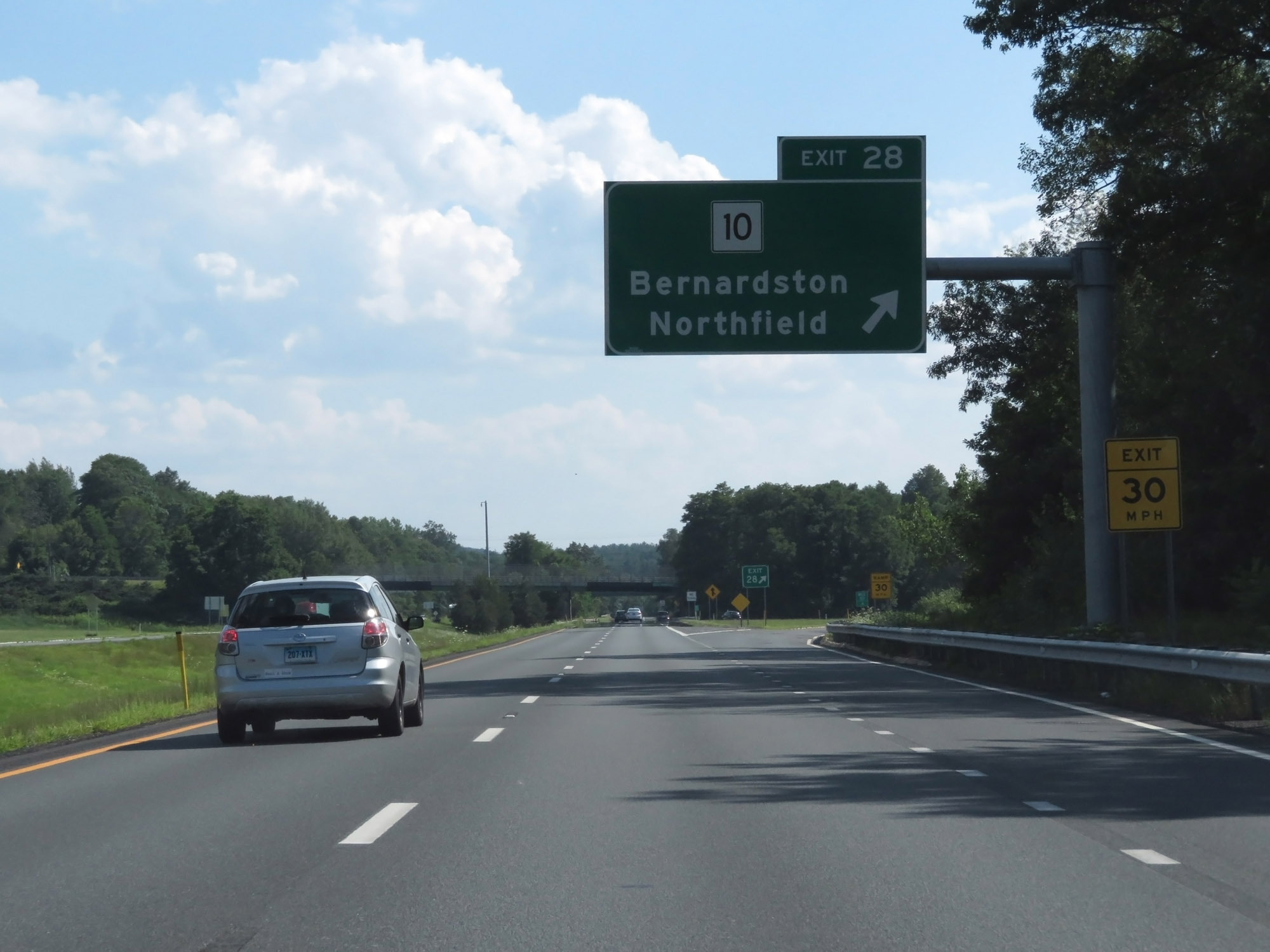 Interstate 91 South at Exit 28: MA 10 - Bernardston / Northfield (Photo taken 8/9/17). |