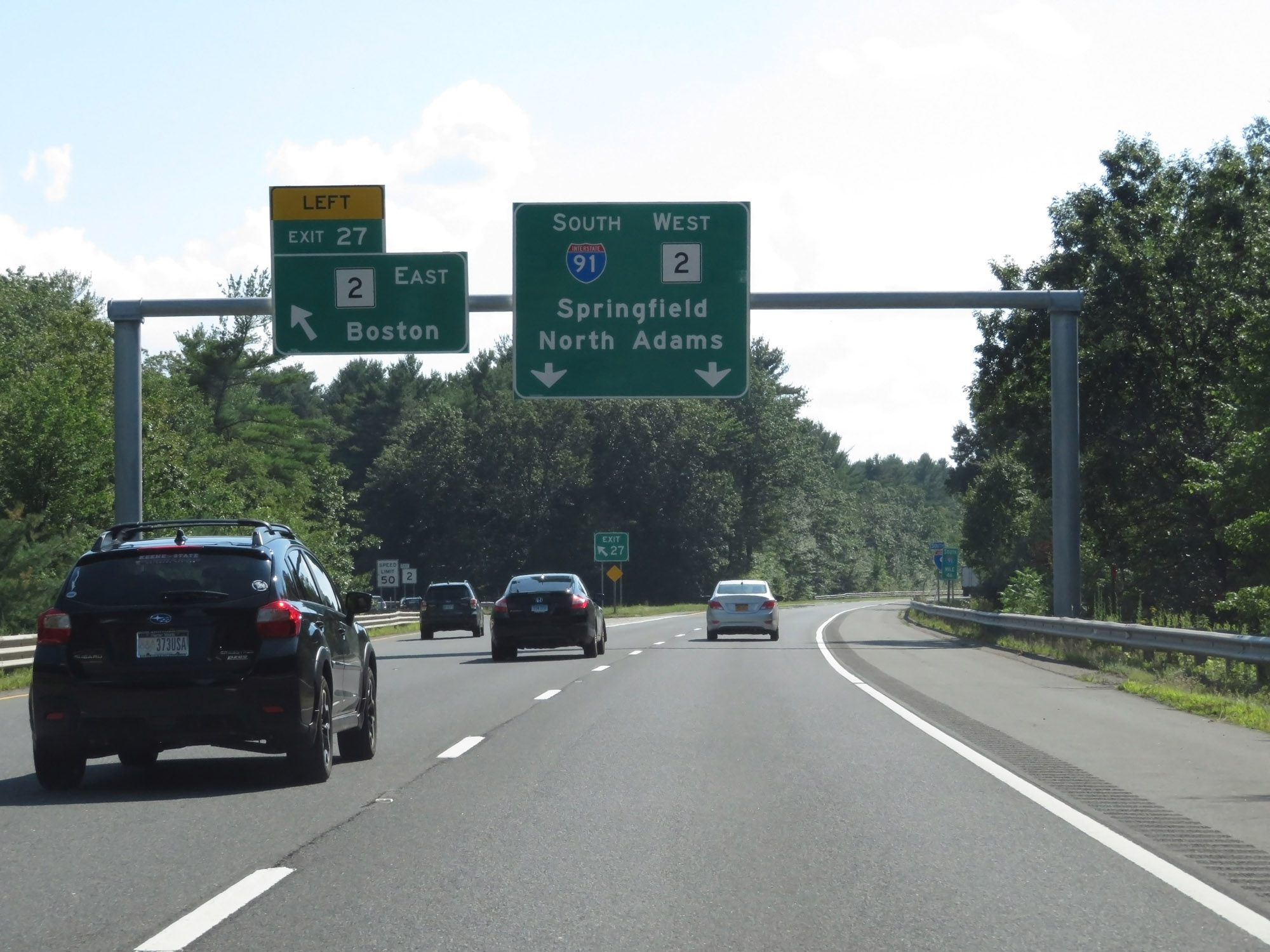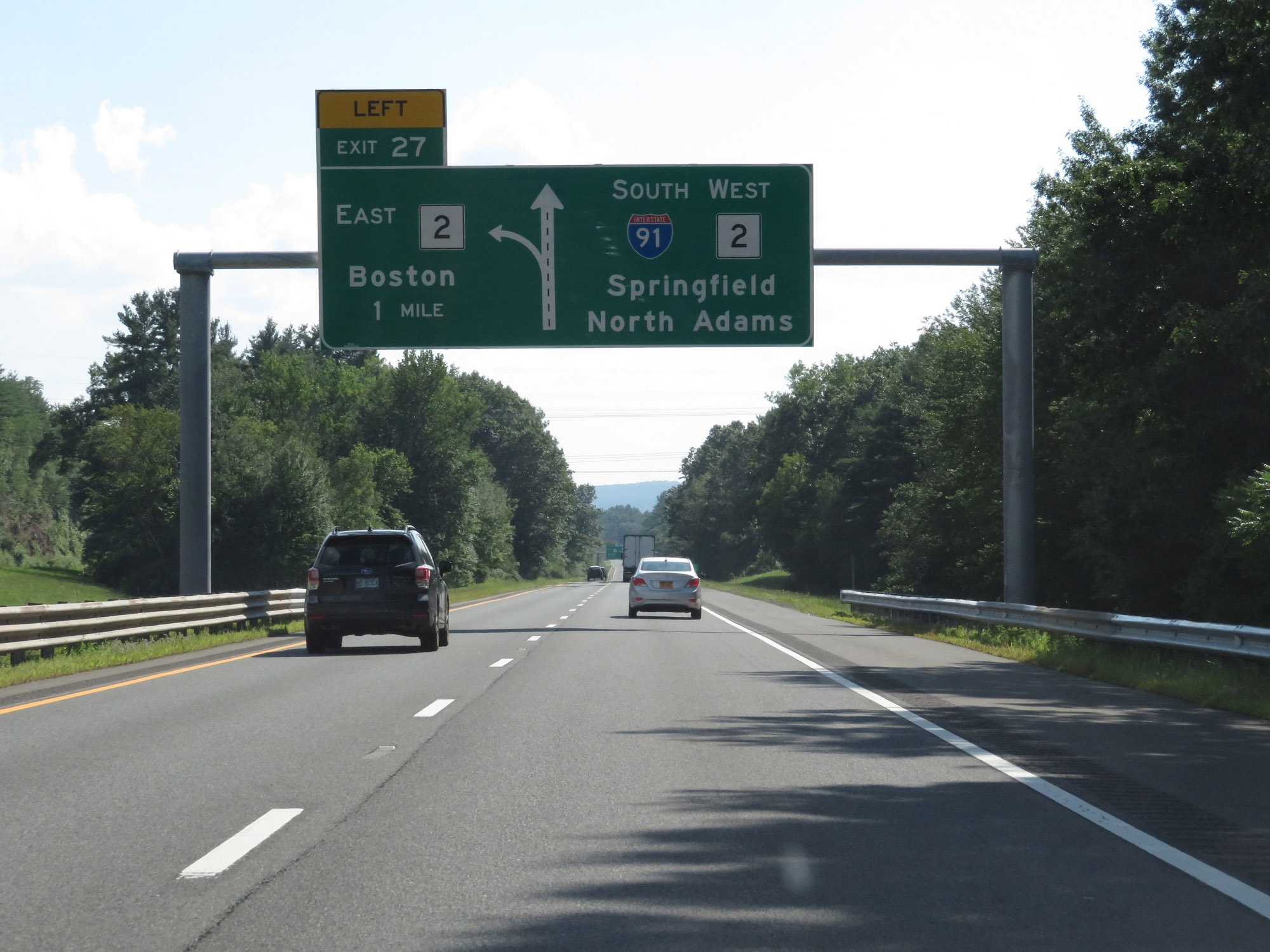 Interstate 91 South at Exit 27: MA 2 East - Boston (Photo taken 8/9/17). |