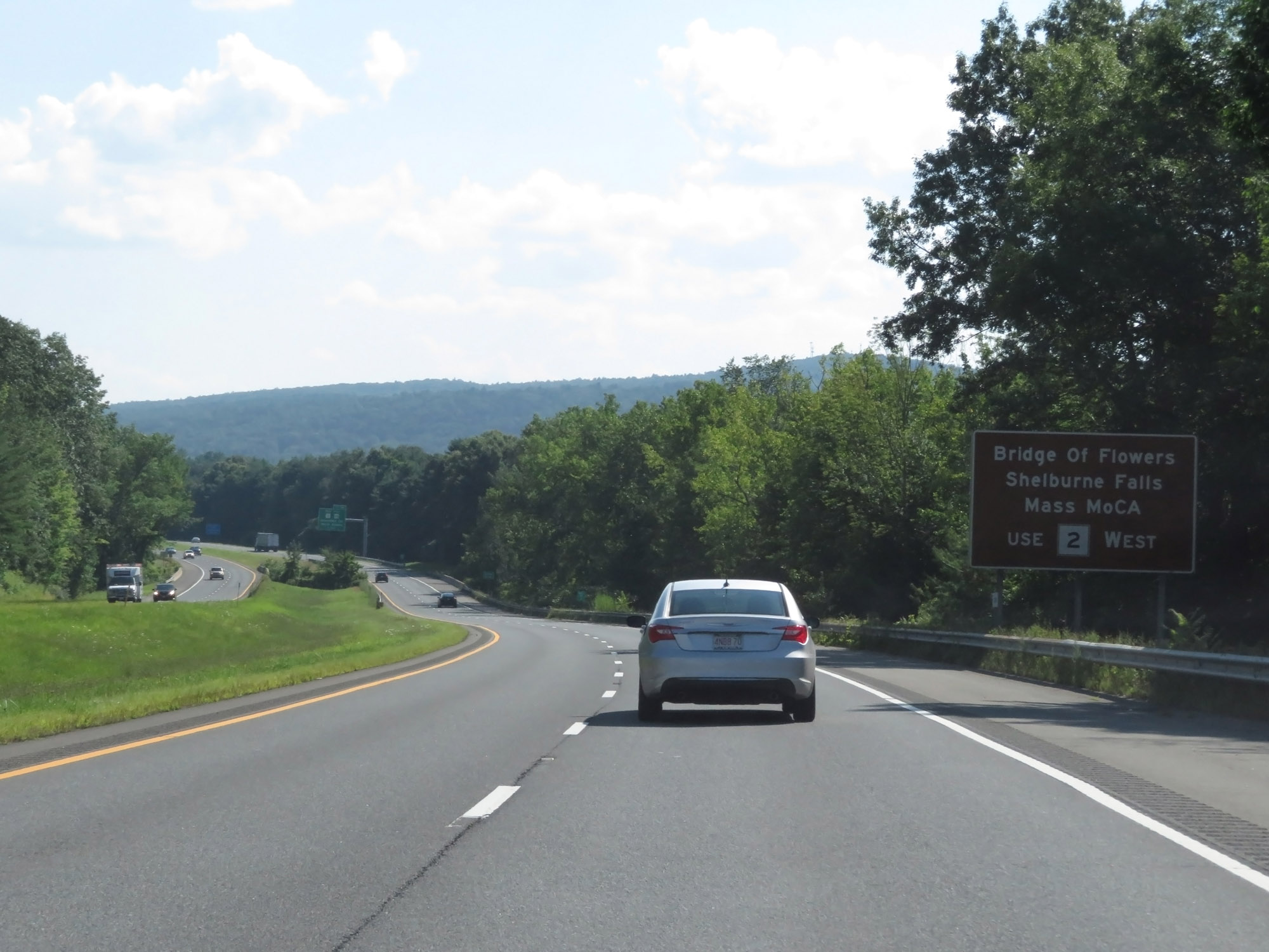 Follow MA 2 West via Exit 26 to Bridge of Flowers, Shelburne Falls, and Mass MoCA. (Photo taken 8/9/17). |