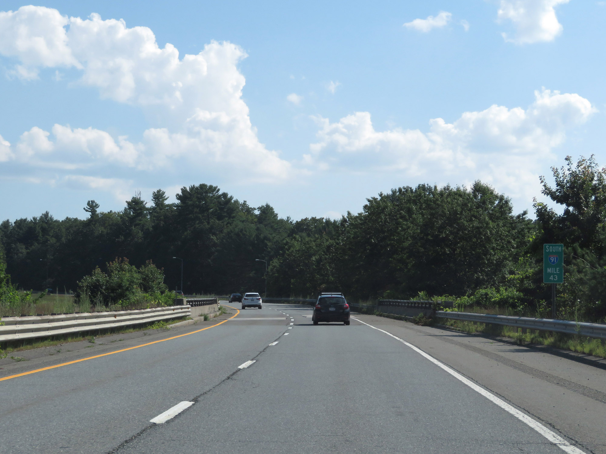Interstate 91 South at mile marker 43. (Photo taken 8/9/17). |