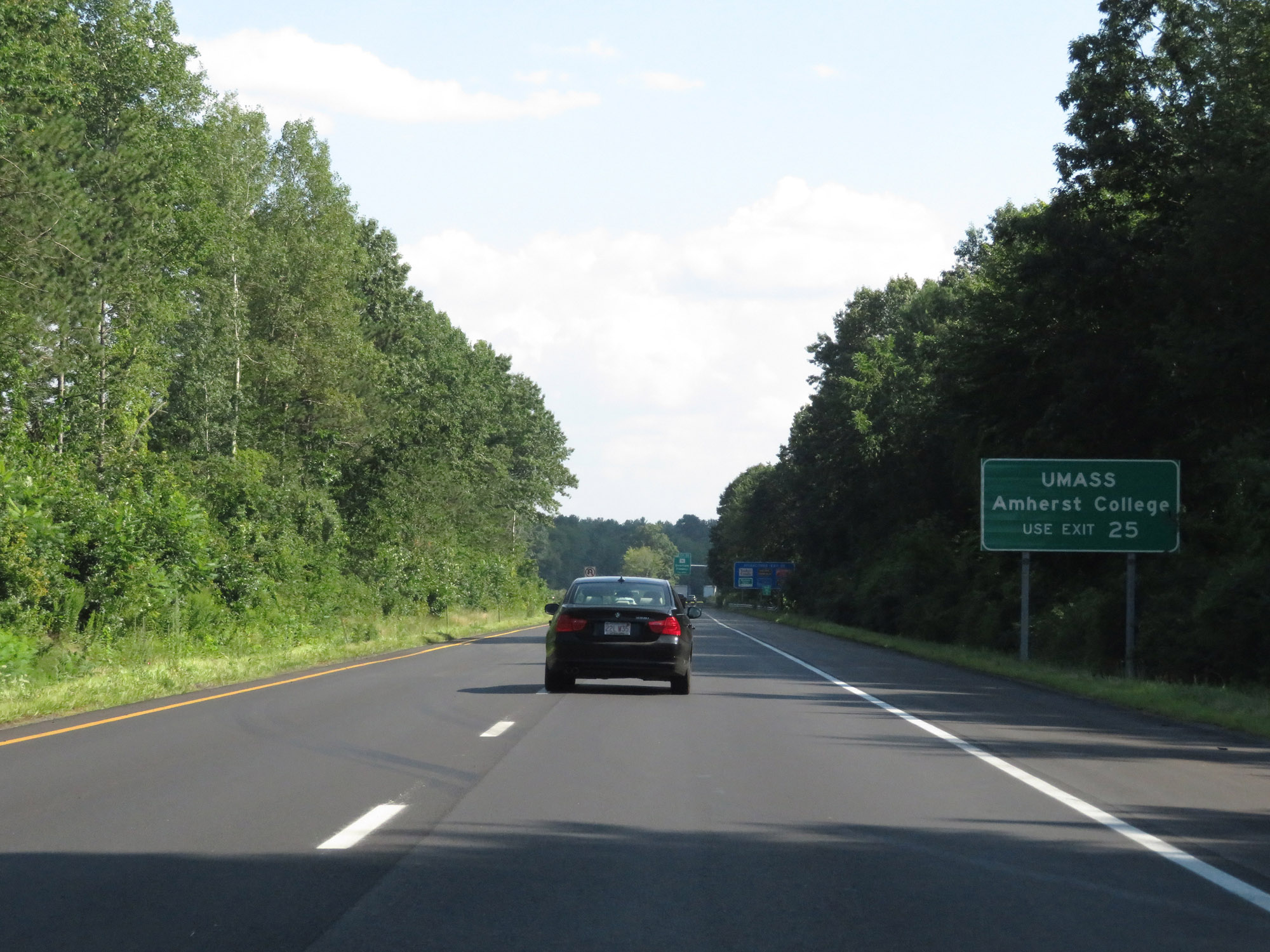 Take Exit 25 to UMASS and Amherst College. (Photo taken 8/9/17). |