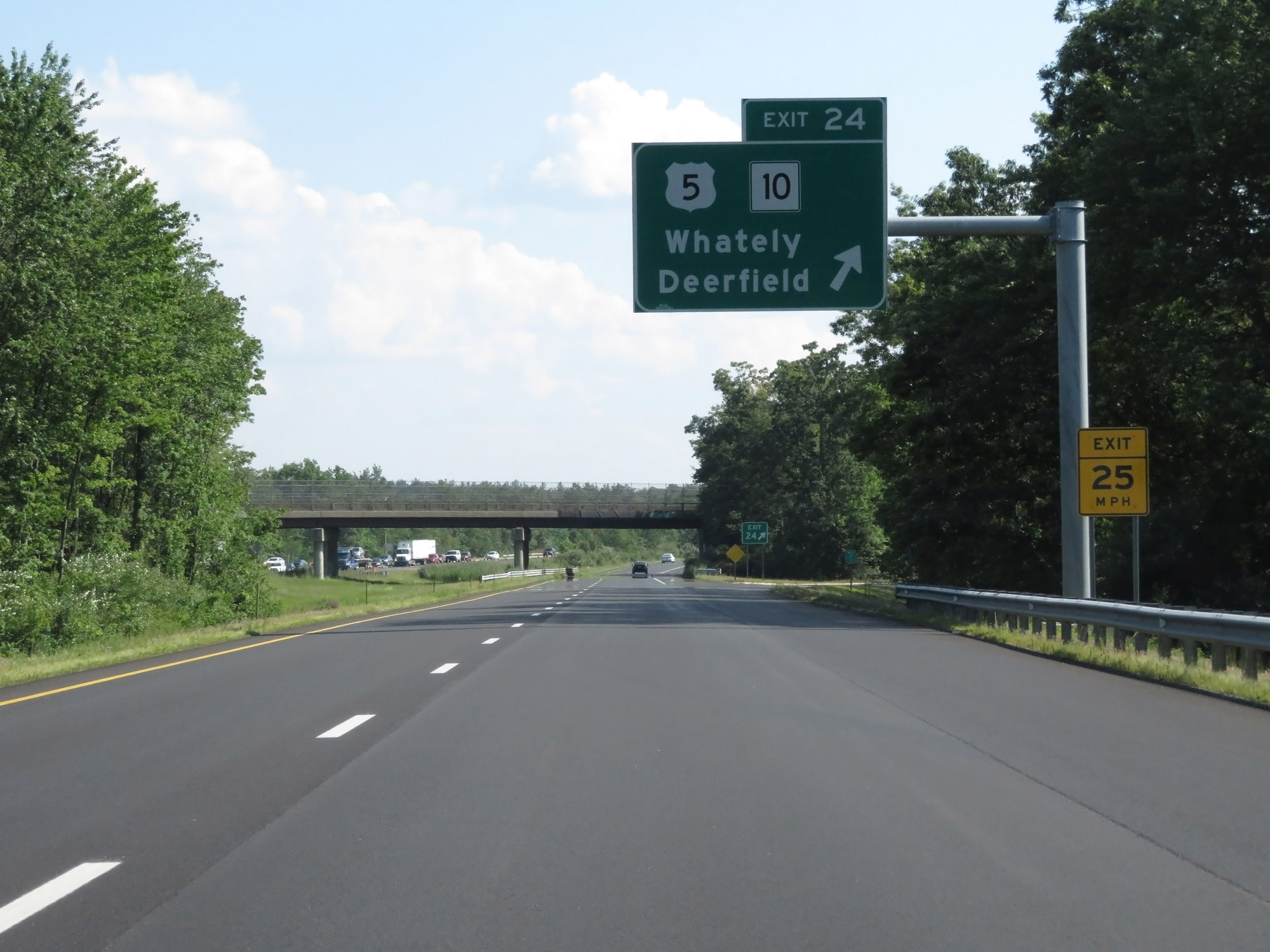 Interstate 91 South at Exit 24: US 5 / MA 10 - Whately / Deerfield (Photo taken 8/9/17). |