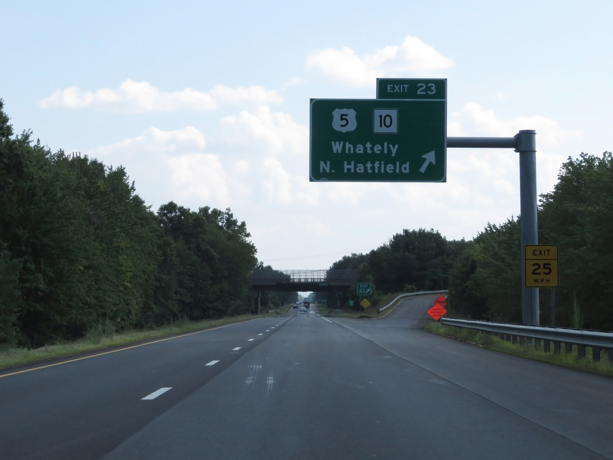 Interstate 91 South at Exit 23: US 5 / MA 10 - Whately / North Hatfield (Photo taken 8/9/17). |