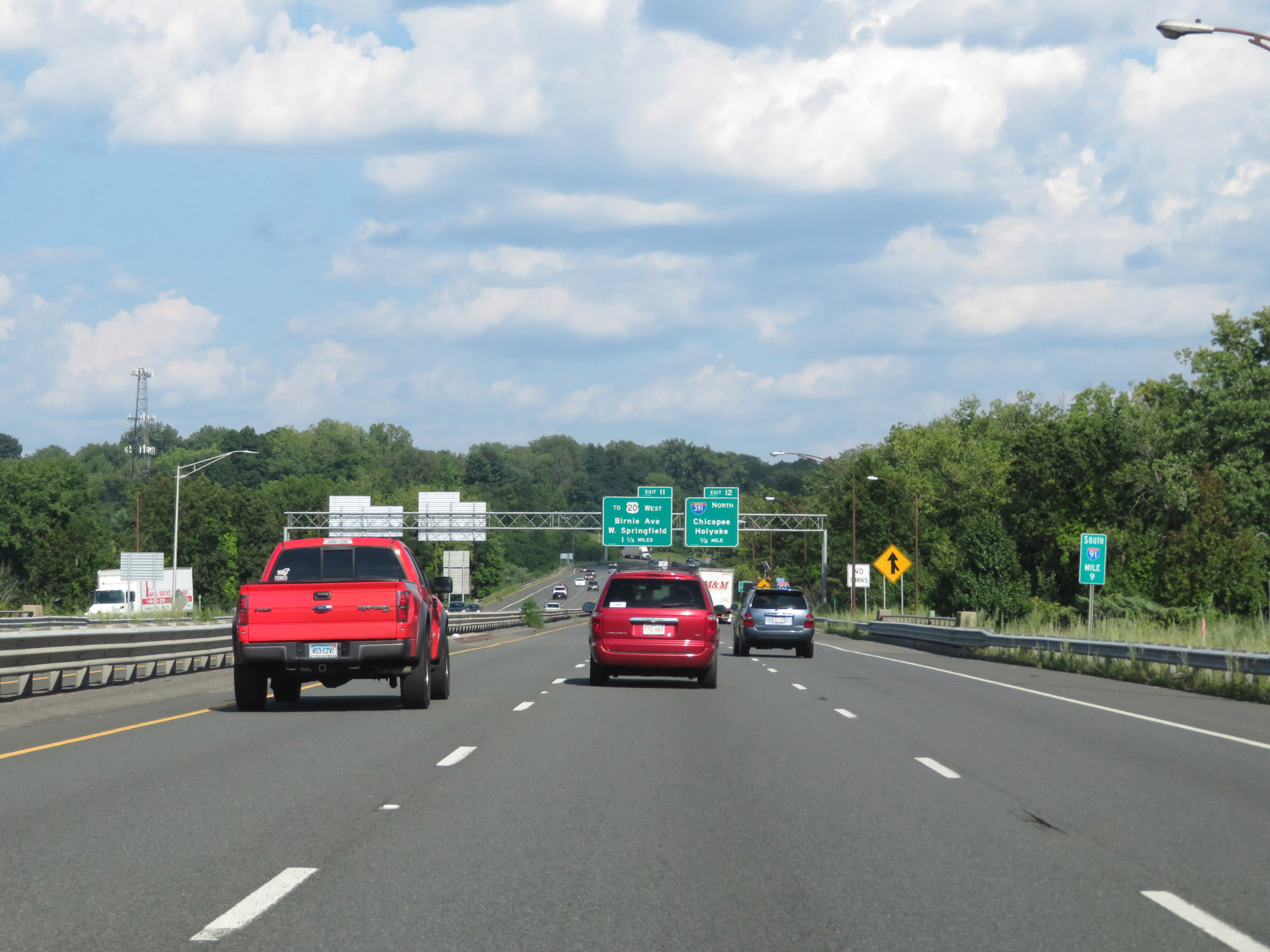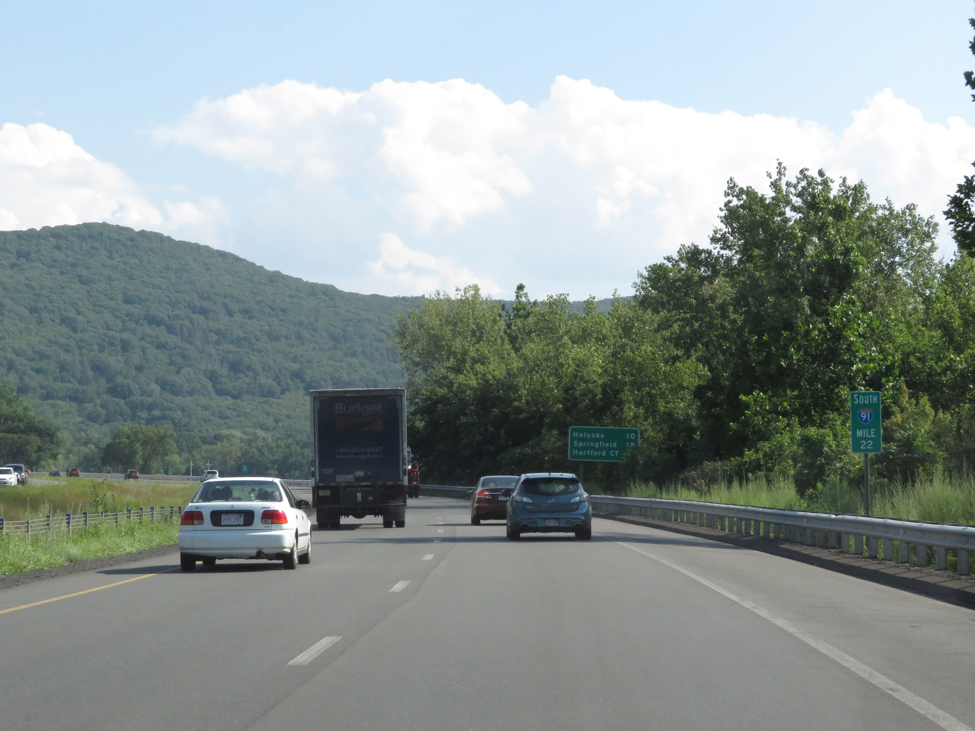 Interstate 91 South as it enters Hampden County. (Photo taken 8/9/17). |