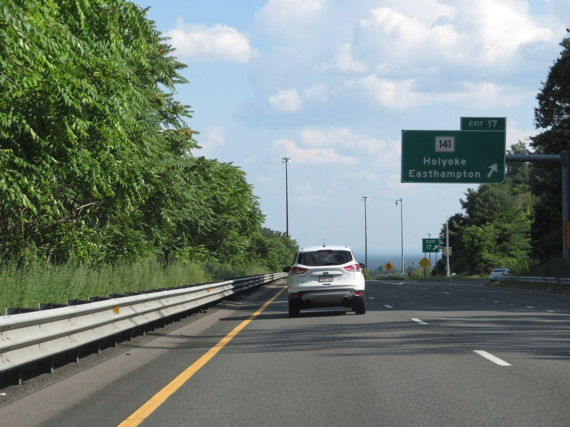 Interstate 91 South at Exit 17: MA 141 - Holyoke / Easthampton (Photo taken 8/9/17). |