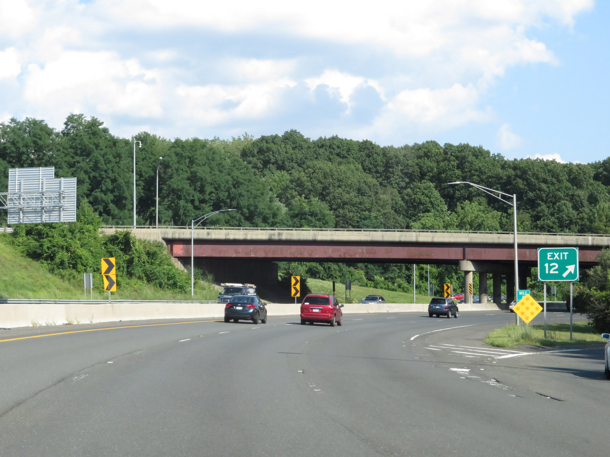 Interstate 91 South approaching Exit 12 - 1/2 mile. (Photo taken 8/9/17). |