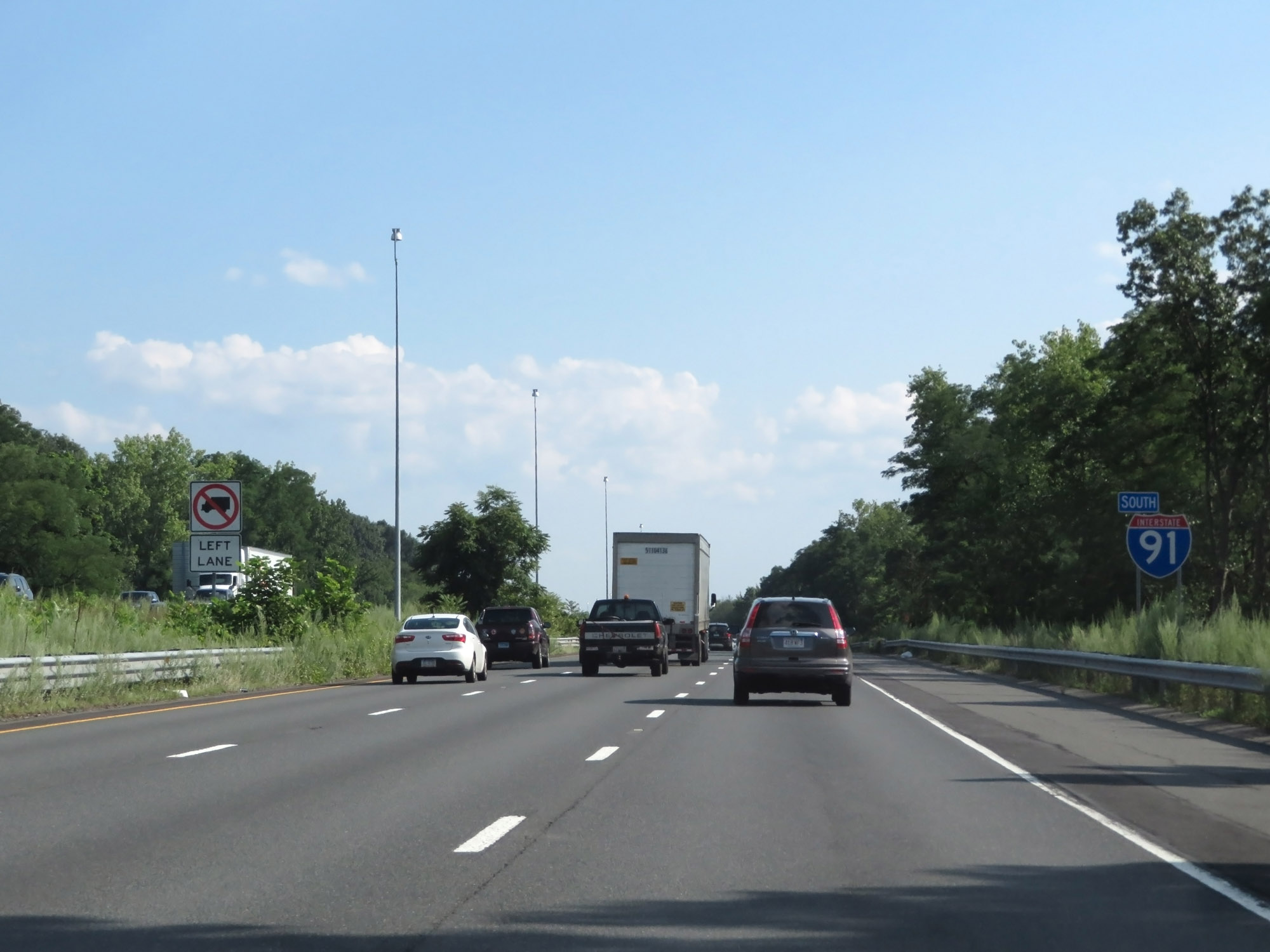 Interstate 91 South approaching Exit 13B - 1/2 mile. (Photo taken 8/9/17). |