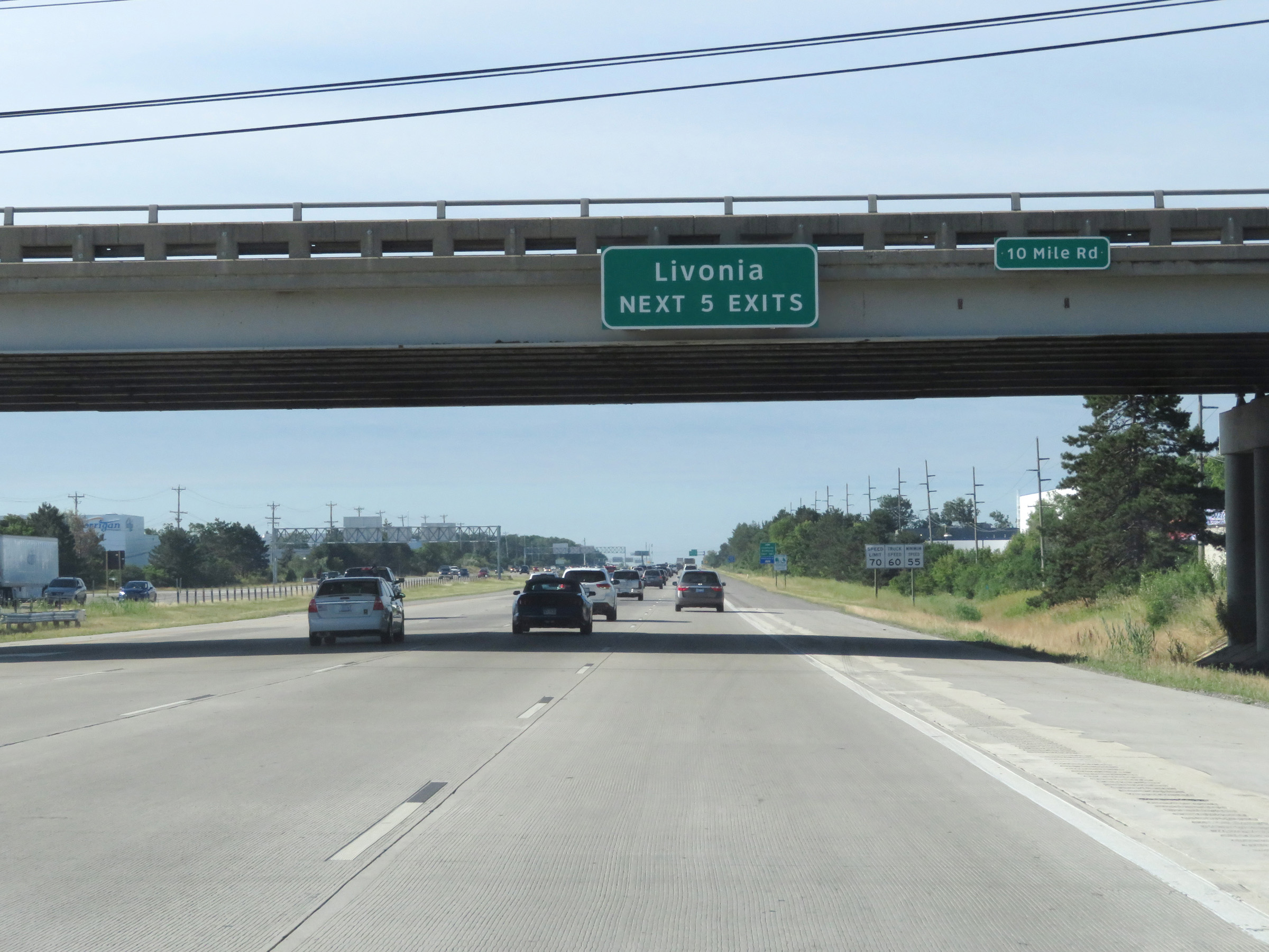 Take any of the next 5 exits to Livonia. (Photo taken 7/15/17). |