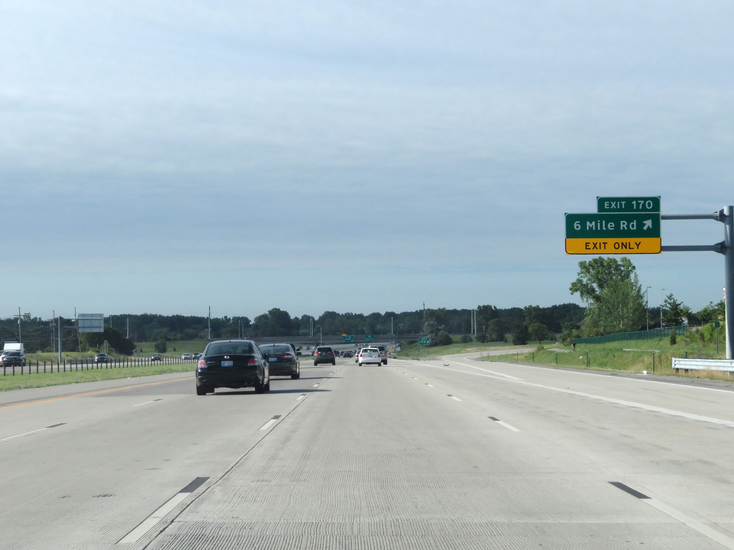Interstate 275 South / Interstate 96 East at Exit 170: 6 Mile Rd (Photo taken 7/15/17). |