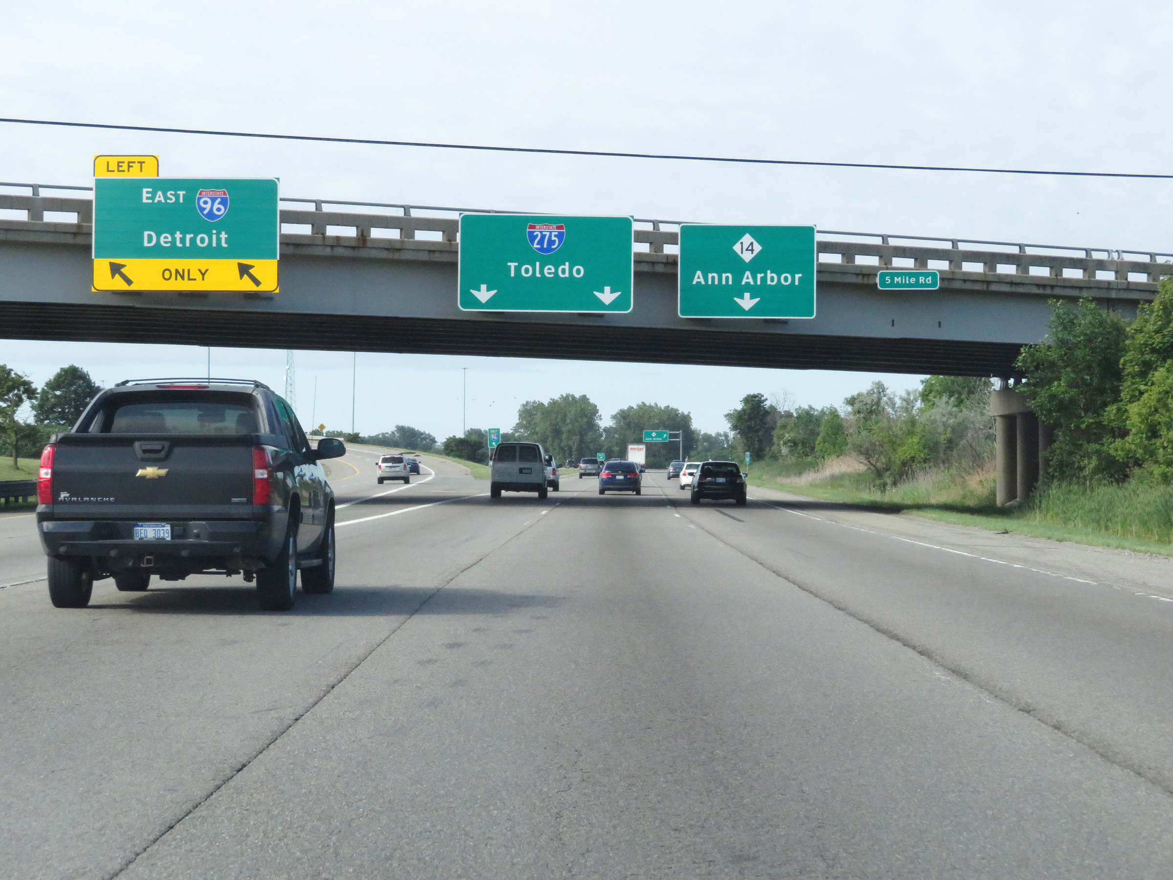 Interstate 275 South / Interstate 96 East at Exit 167: 8 Mile Rd / Northville (Photo taken 7/15/17). |