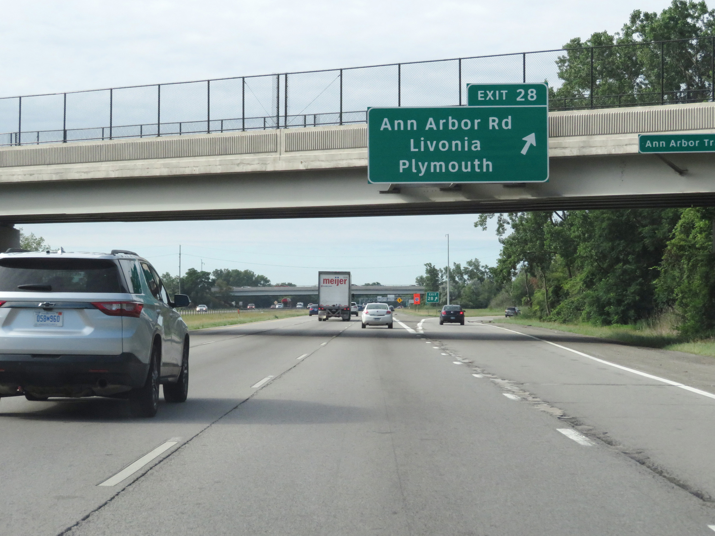 Interstate 275 South at Exit 28: Ann Arbor Rd / Livonia / Plymouth (Photo taken 7/15/17). |