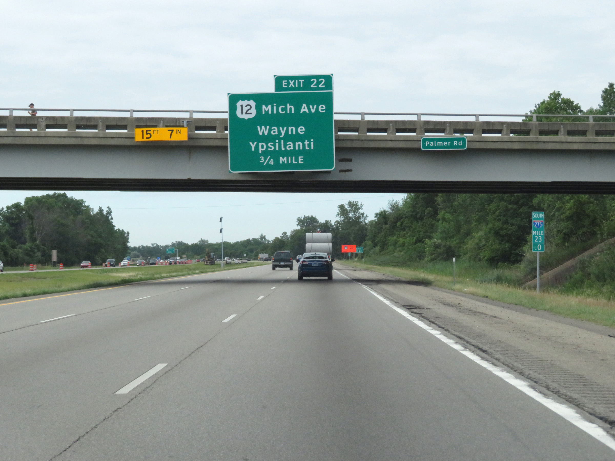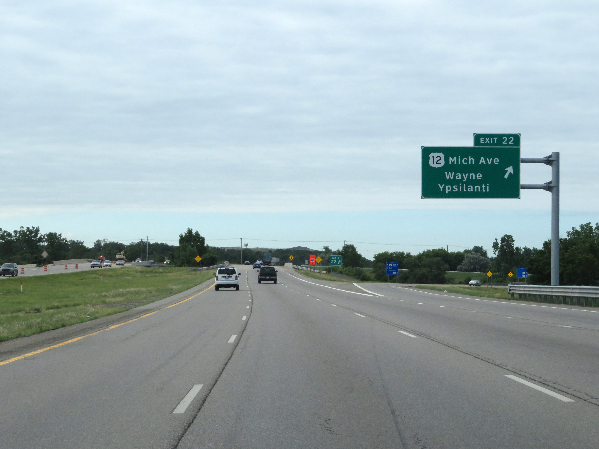 Interstate 275 South at Exit 22: US 12 (Michigan Ave) - Wayne / Ypsilanti (Photo taken 7/15/17). |