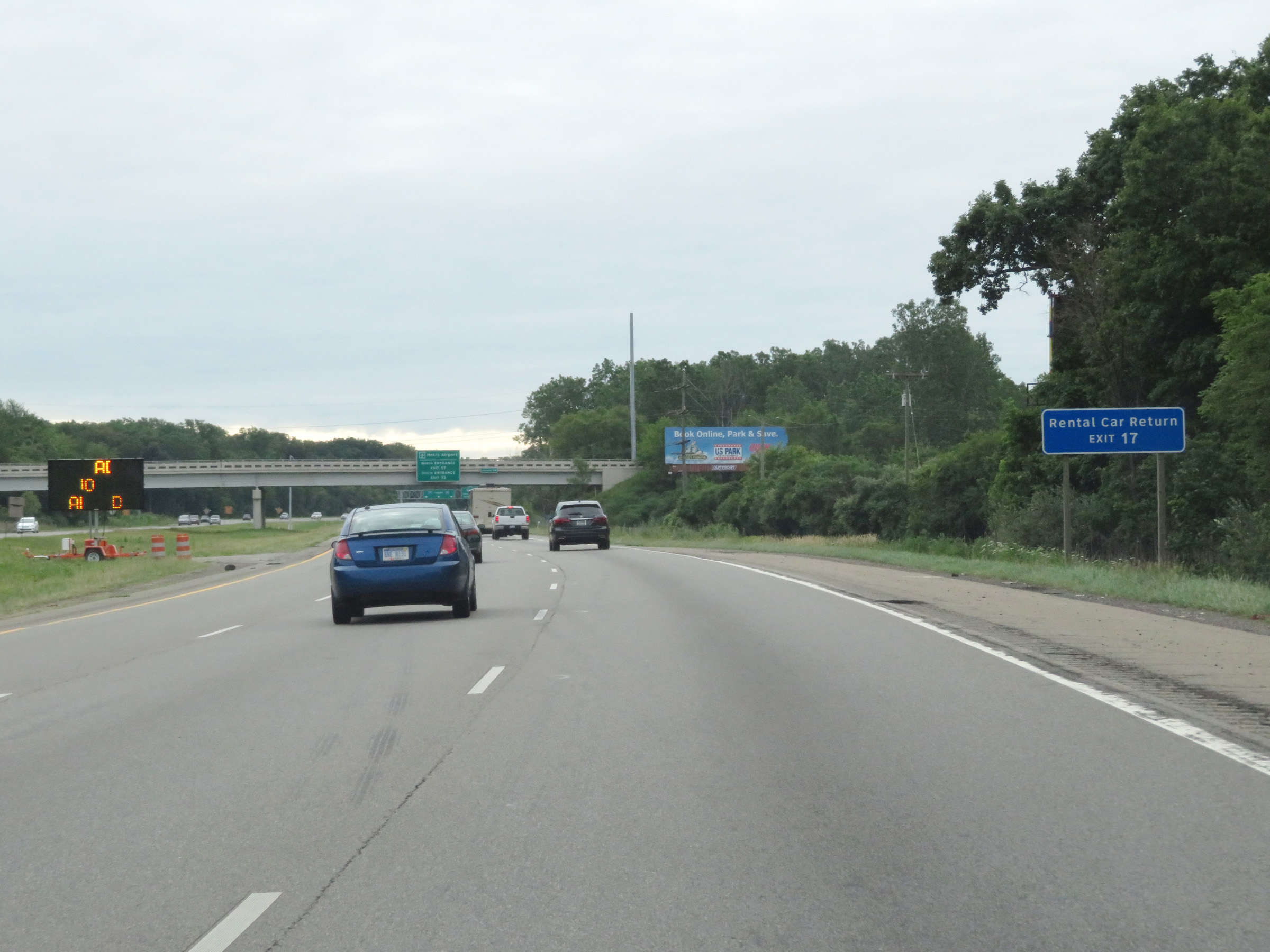 Also take Exit 17 to the Detroit Metro Airport's Rental Car Return area. (Photo taken 7/15/17). |