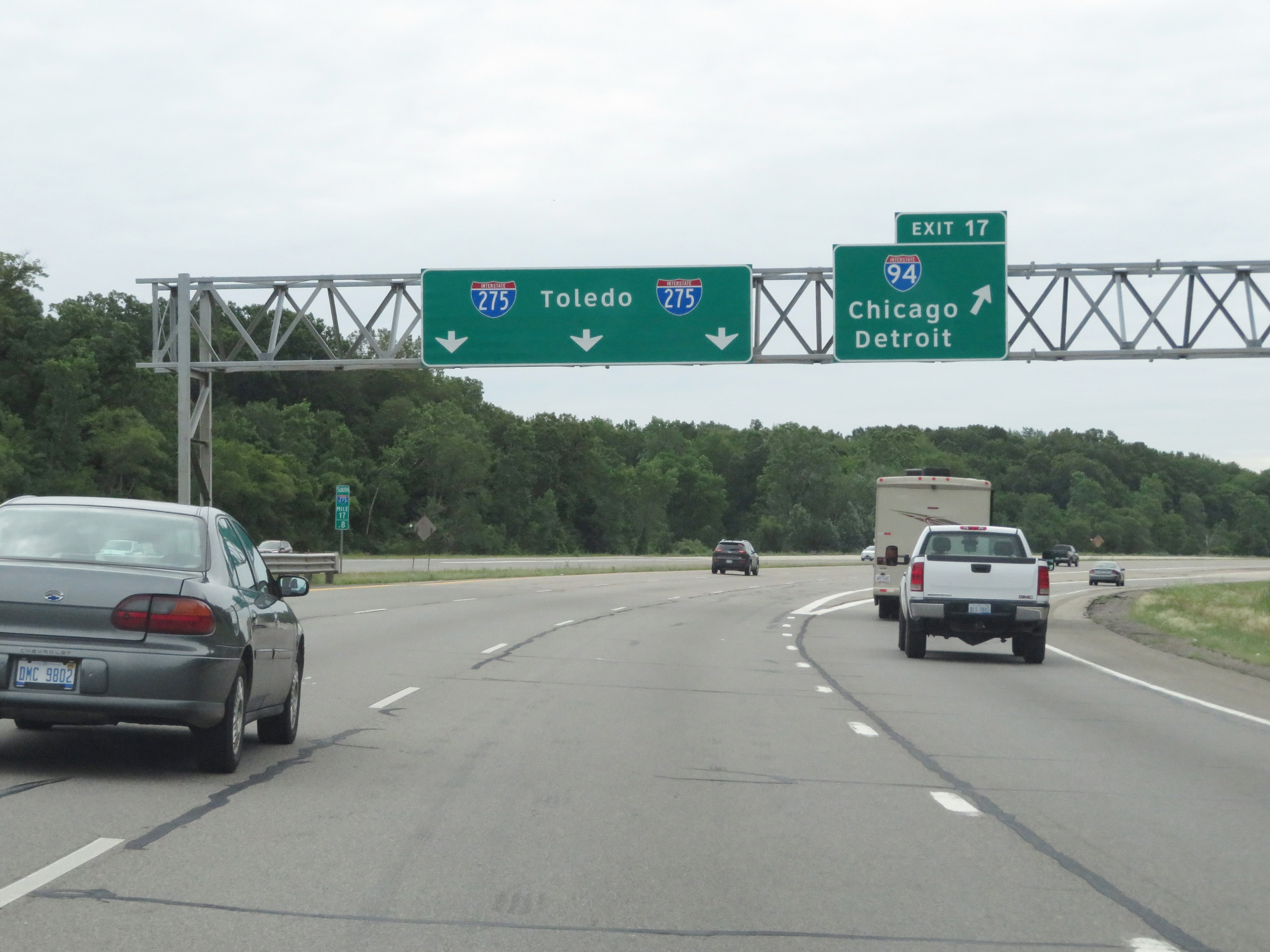 Interstate 275 South at Exit 17: Interstate 94 - Chicago / Detroit (Photo taken 7/15/17). |