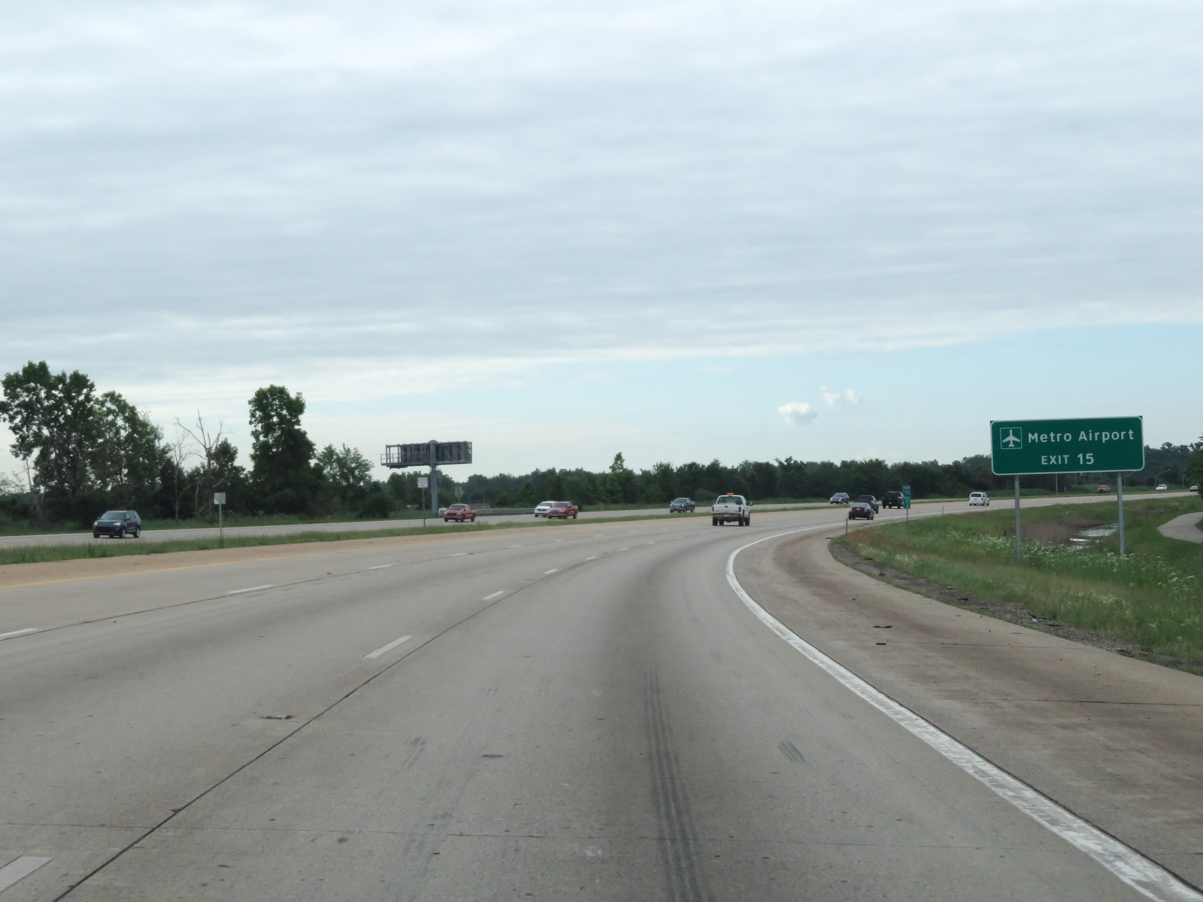 Again, take Exit 15 to the Detroit Metro Airport's South Entrance. (Photo taken 7/15/17). |