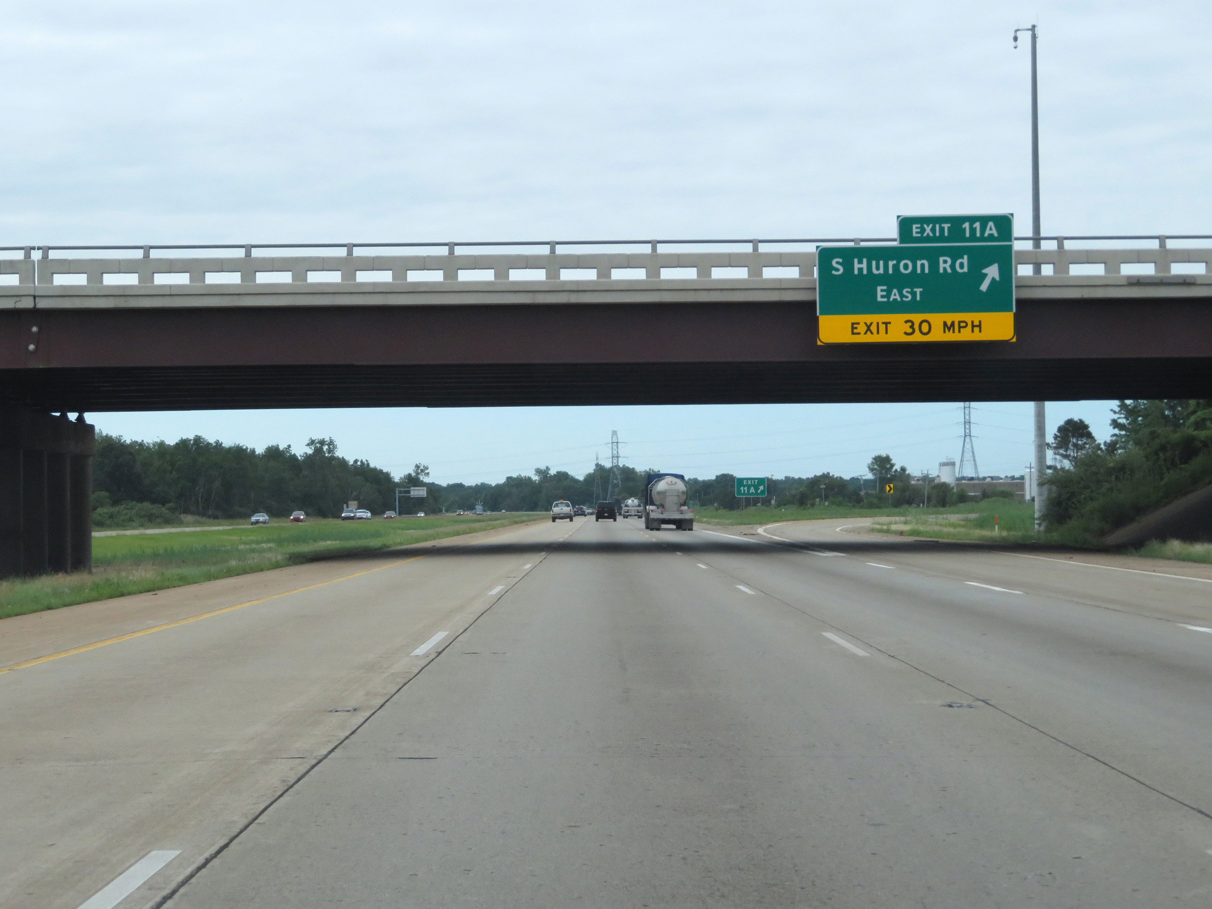 Interstate 275 South at Exit 11A: South Huron Rd East (Photo taken 7/15/17). |