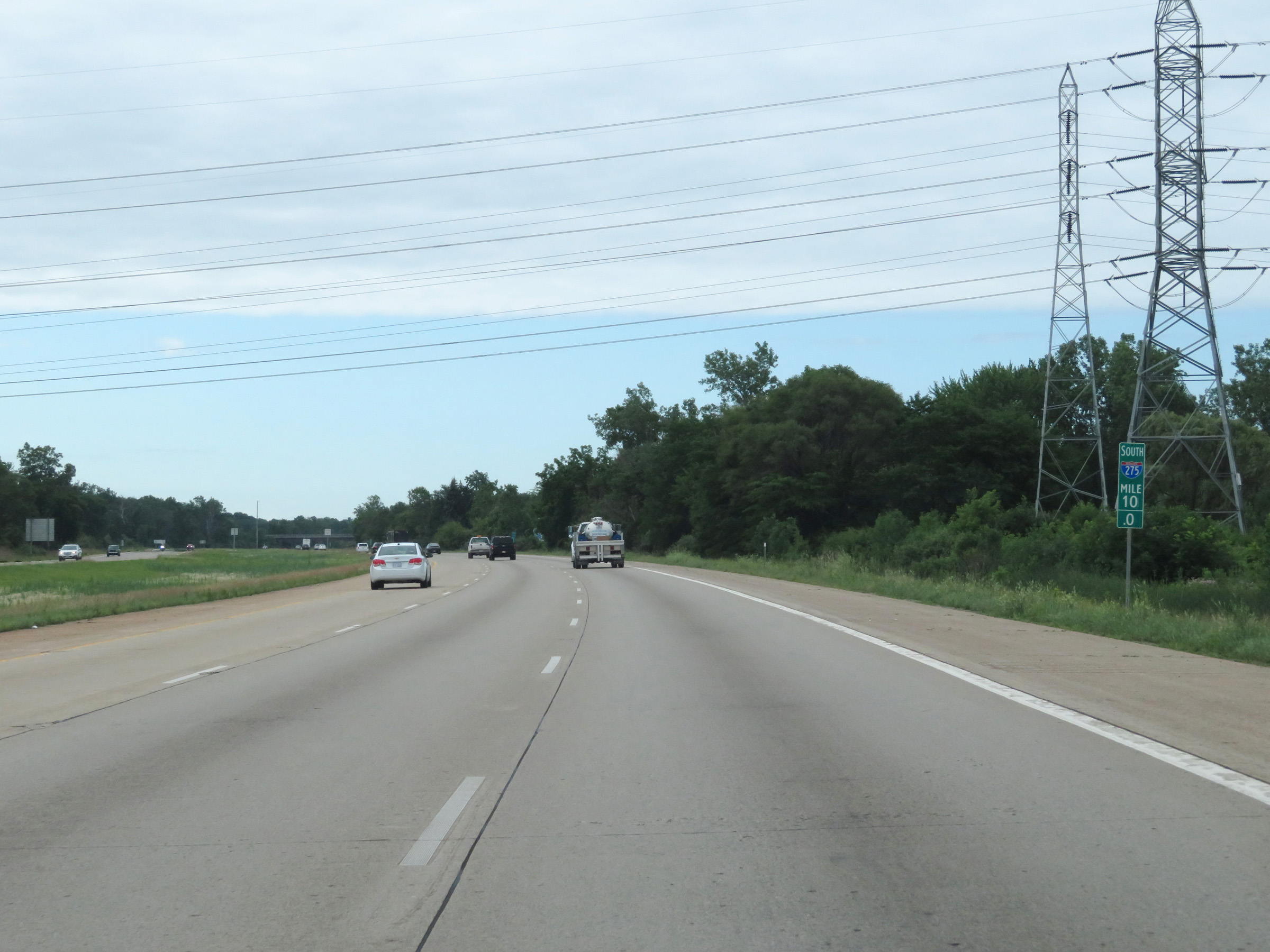 View on Interstate 275 South at mile marker 29, just after the departure of Interstate 96 East. (Photo taken 7/15/17). |