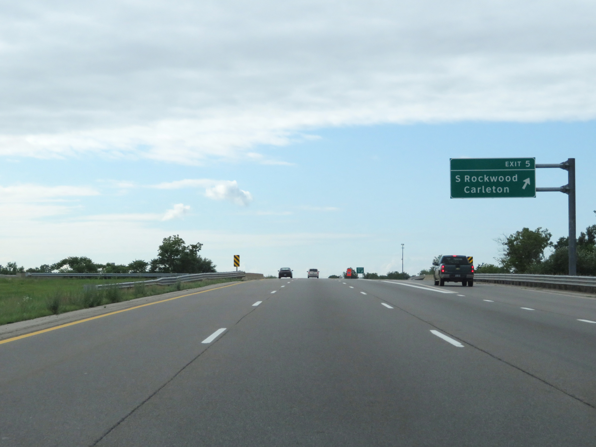 Interstate 275 South at Exit 5: South Rockwood / Carleton (Photo taken 7/15/17). |