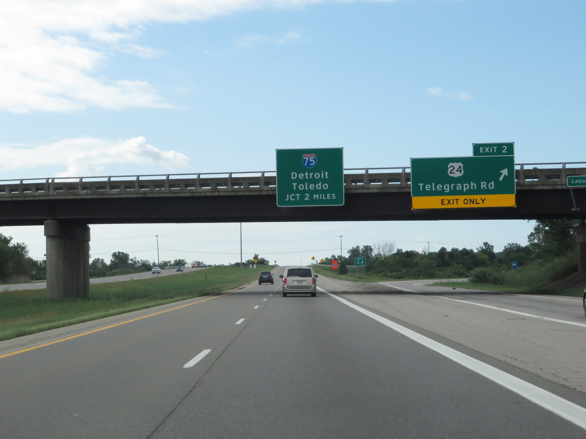 Interstate 275 South at Exit 2: US 24 - Telegraph Rd (Photo taken 7/15/17). |