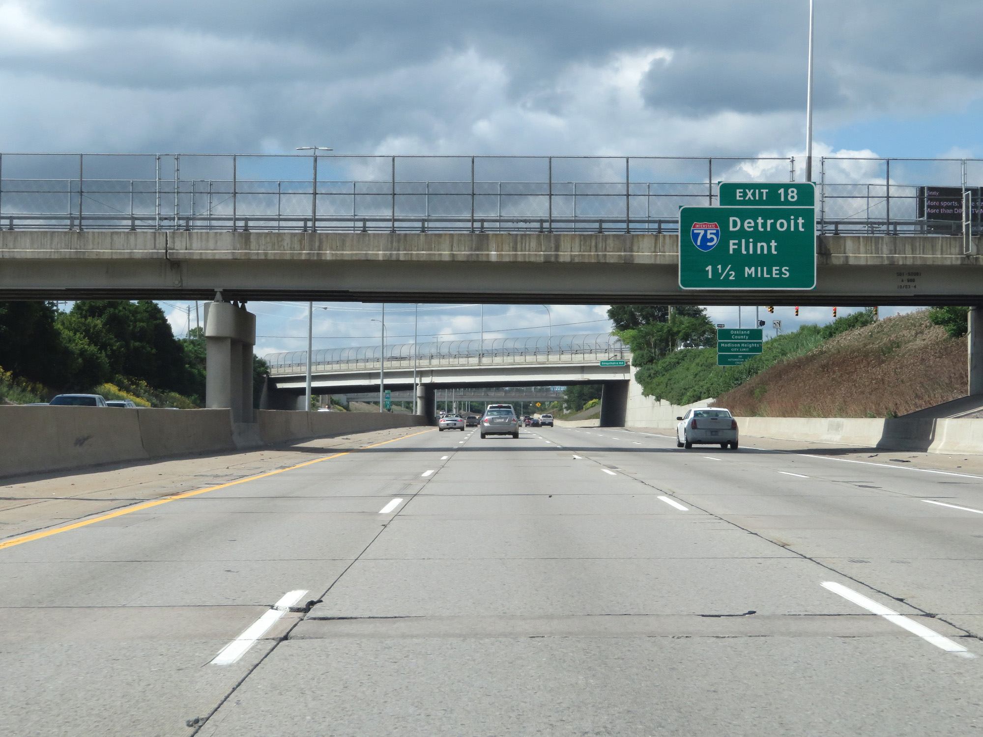 Interstate 696 West at Exit 18: Interstate 75 - Detroit / Flint (Photo taken 7/15/17). |