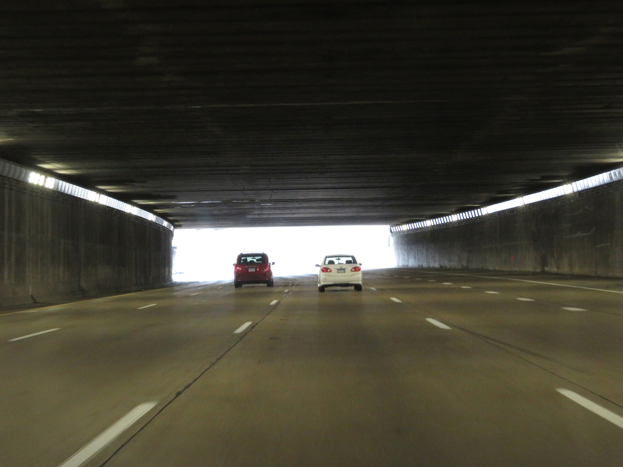View on Interstate 696 West as it prepares to enter the third of three brief tunnels in the area. (Photo taken 7/15/17). |