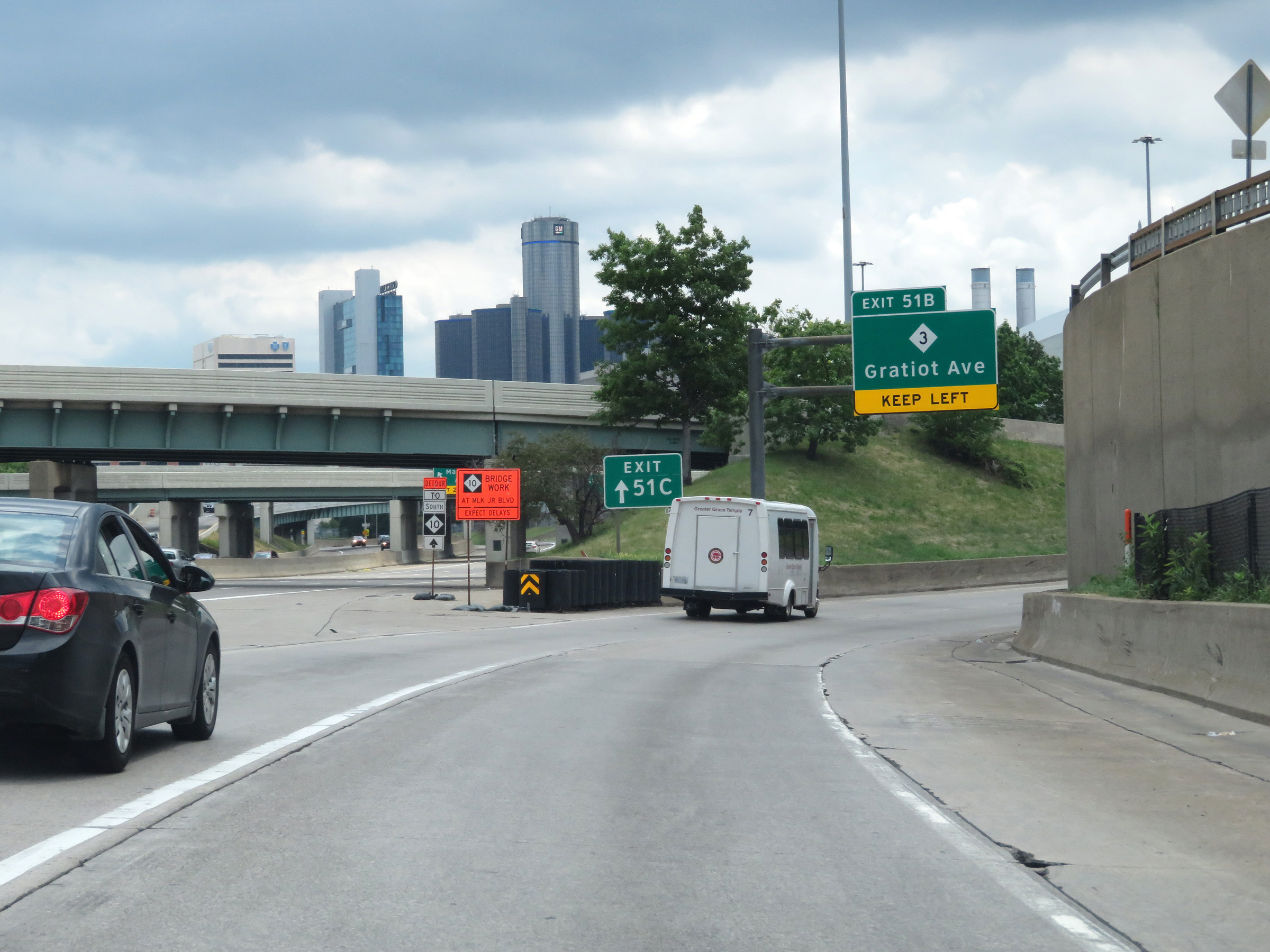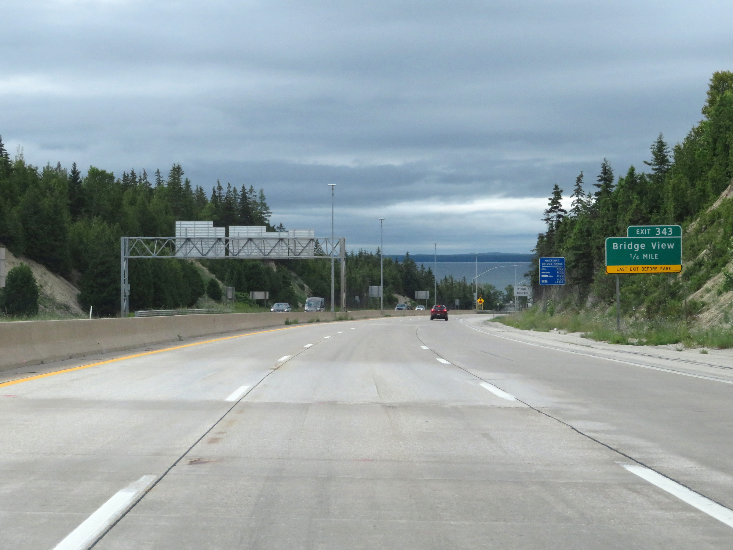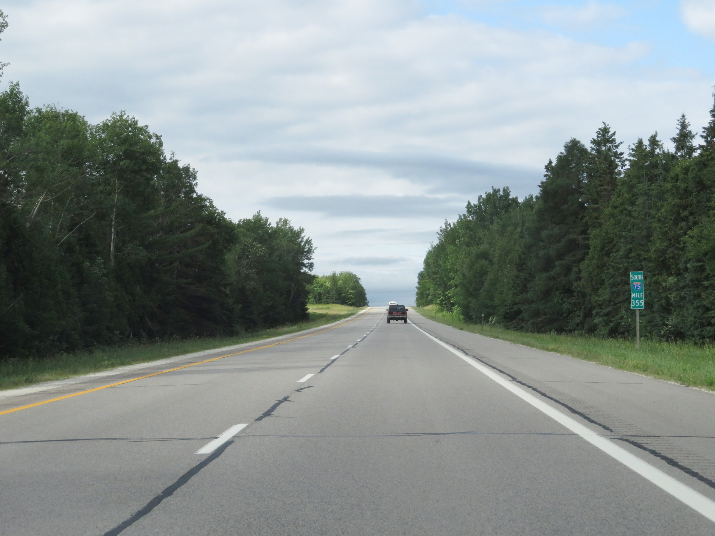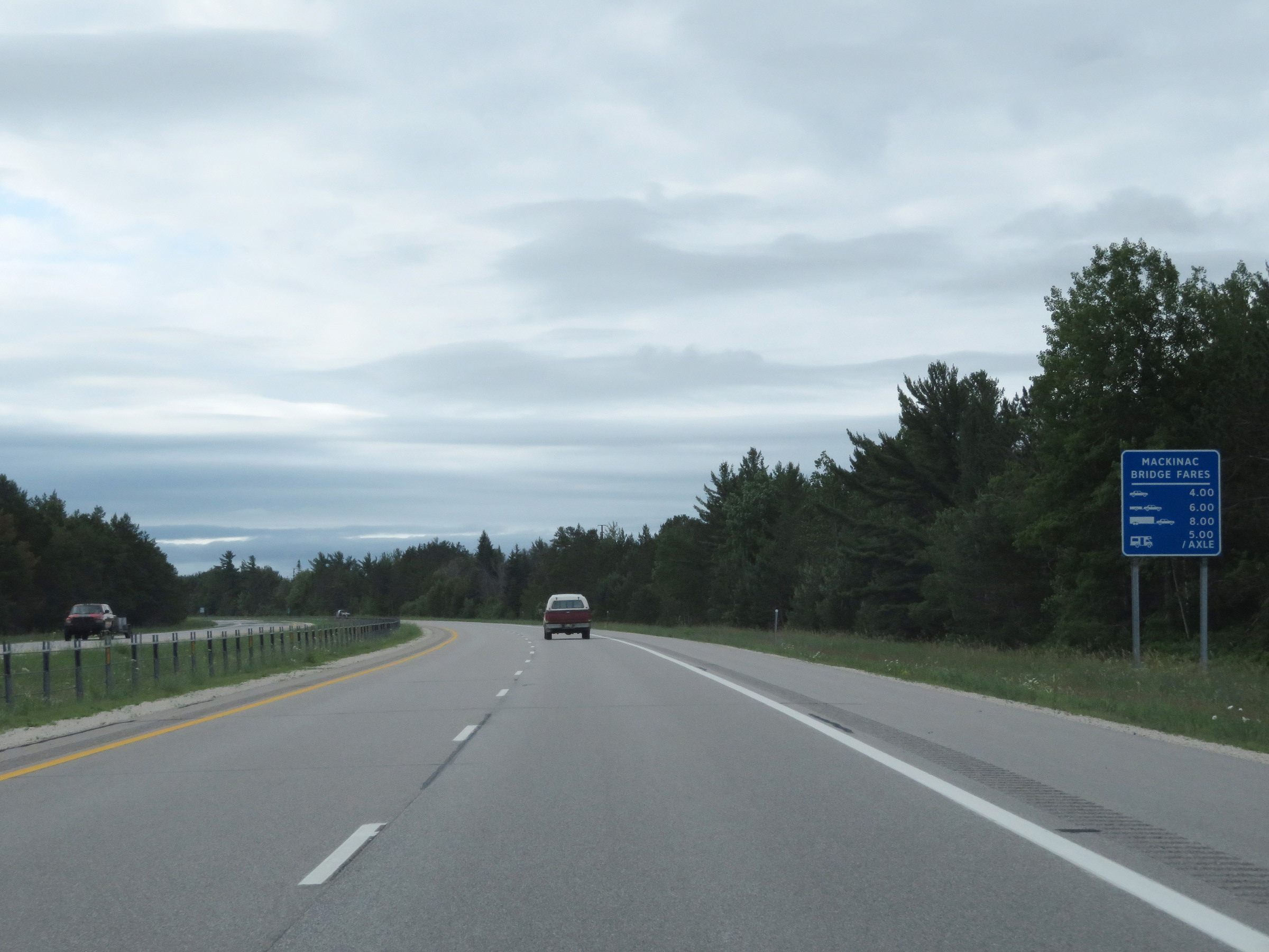 Interstate 75 South as it nears the southern end of the Mackinac Bridge, which occurs in Mackinaw City. (Photo taken 7/16/17).  |