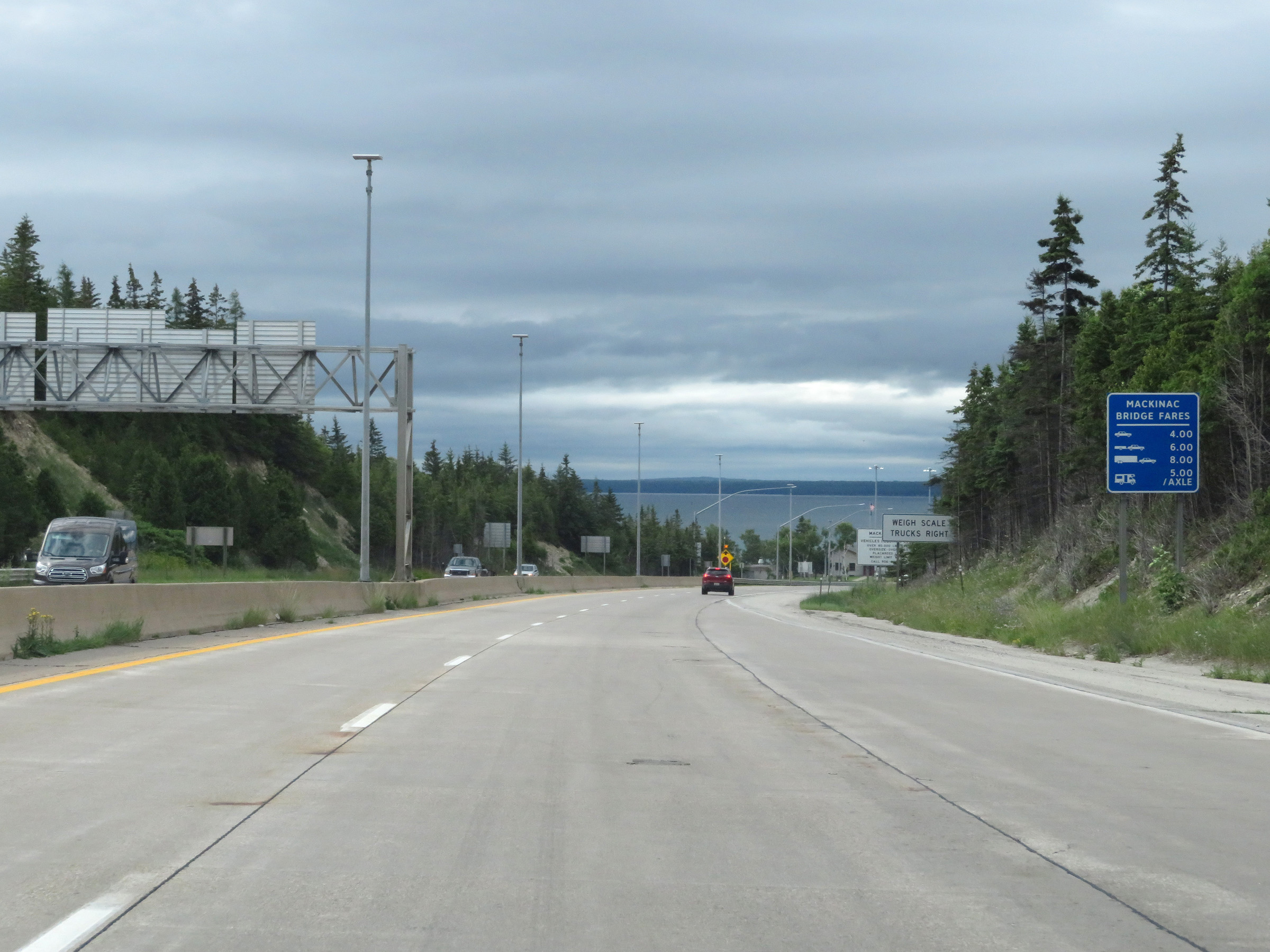 Interstate 75 South as it approaches the toll plaza for the world famous Mackinac Bridge in St. Ignace. (Photo taken 7/16/17).  |