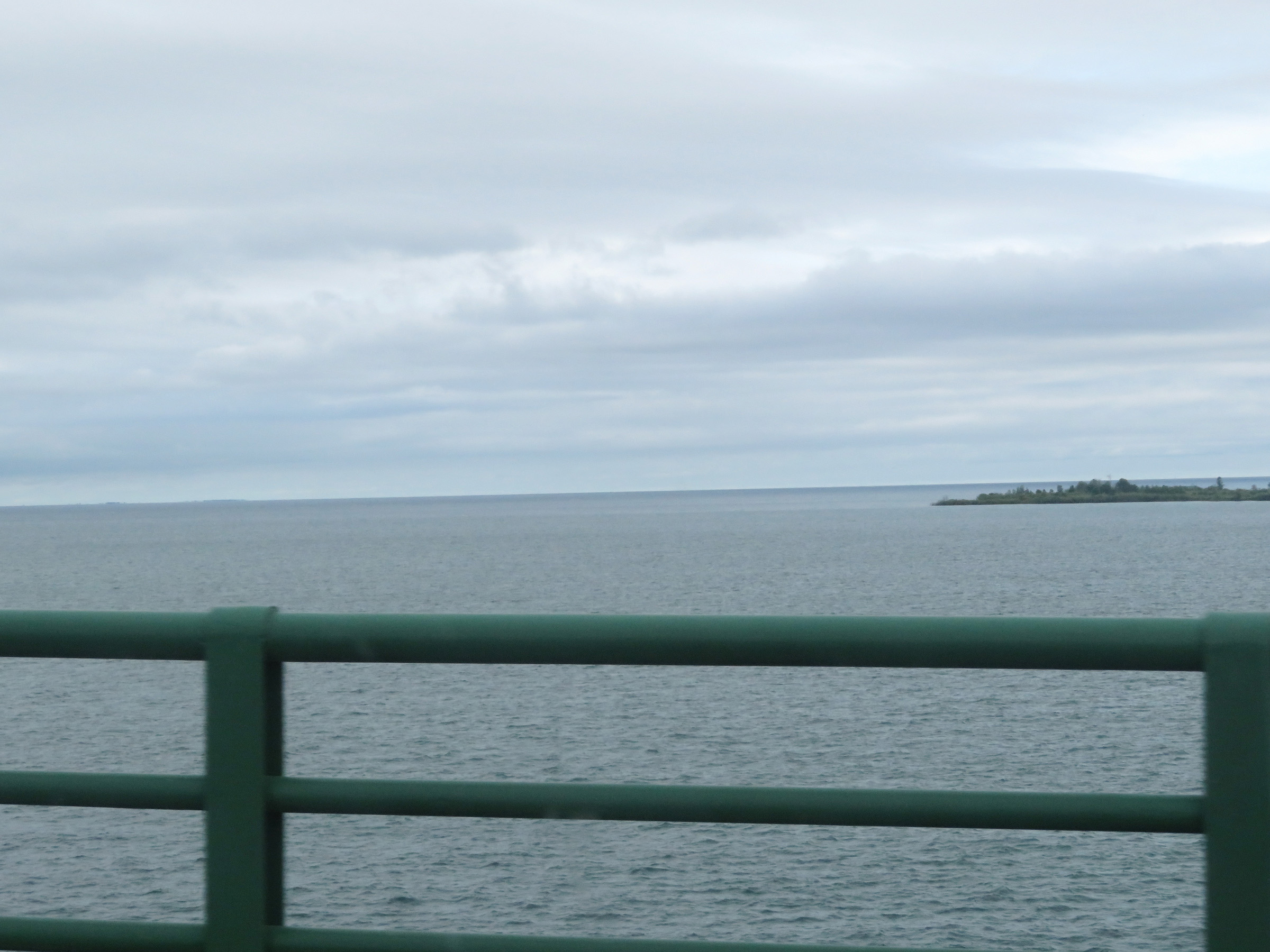 View of the Straits of Mackinac from Interstate 75 South on the Mackinac Bridge, looking to the west. (Photo taken 7/16/17).  |