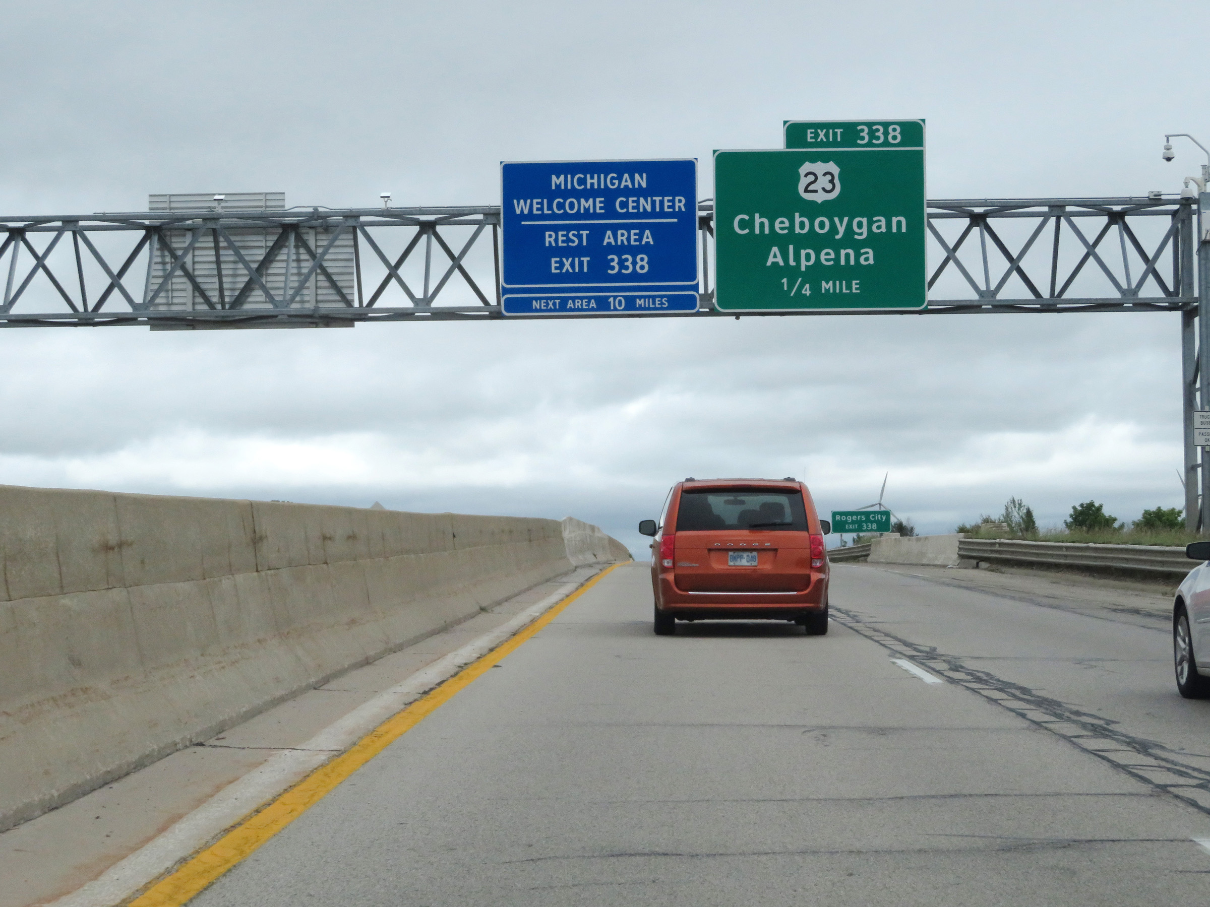 Interstate 75 South at Exit 338: US 23 - Cheboygan / Alpena (Photo taken 7/16/17).  |