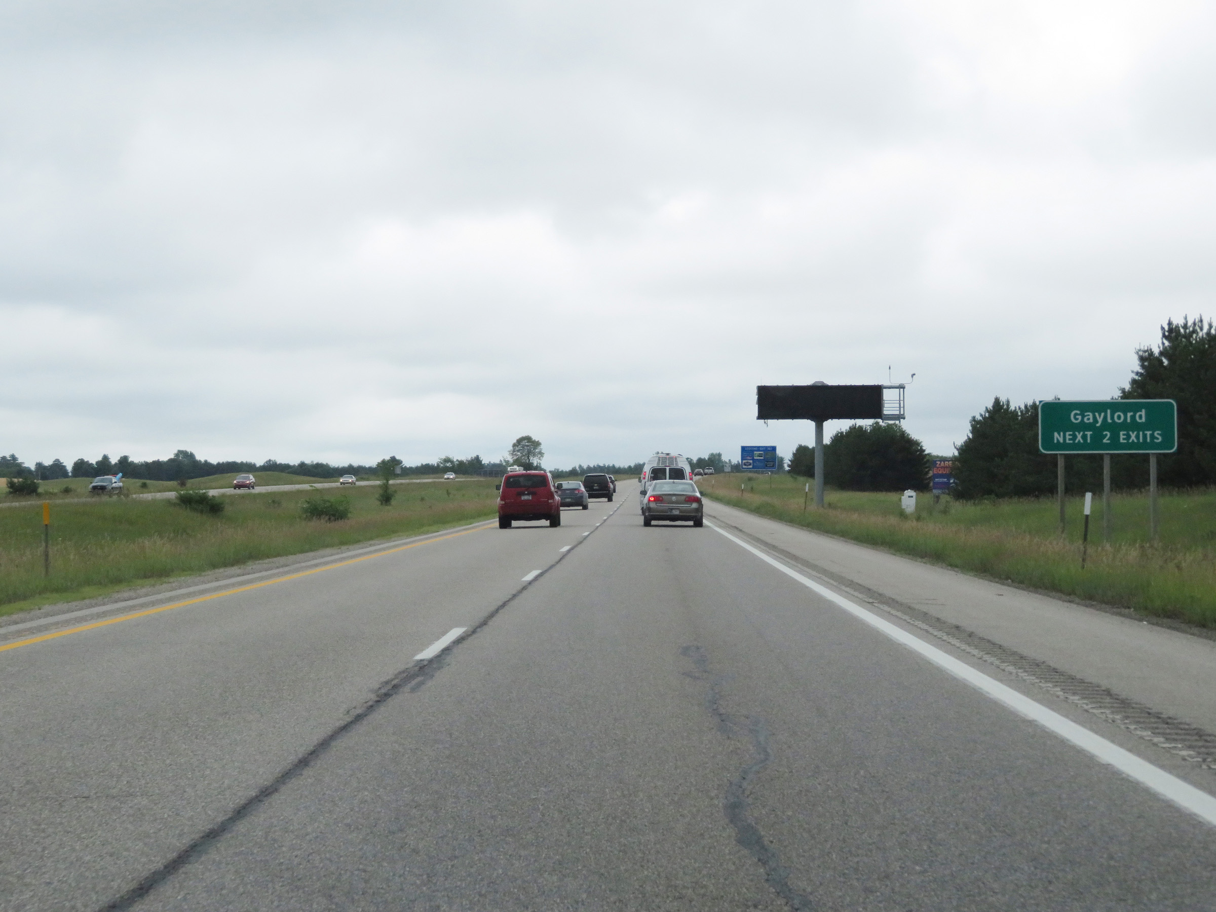 Take either of the next 2 exits to Gaylord. (Photo taken 7/16/17).  |