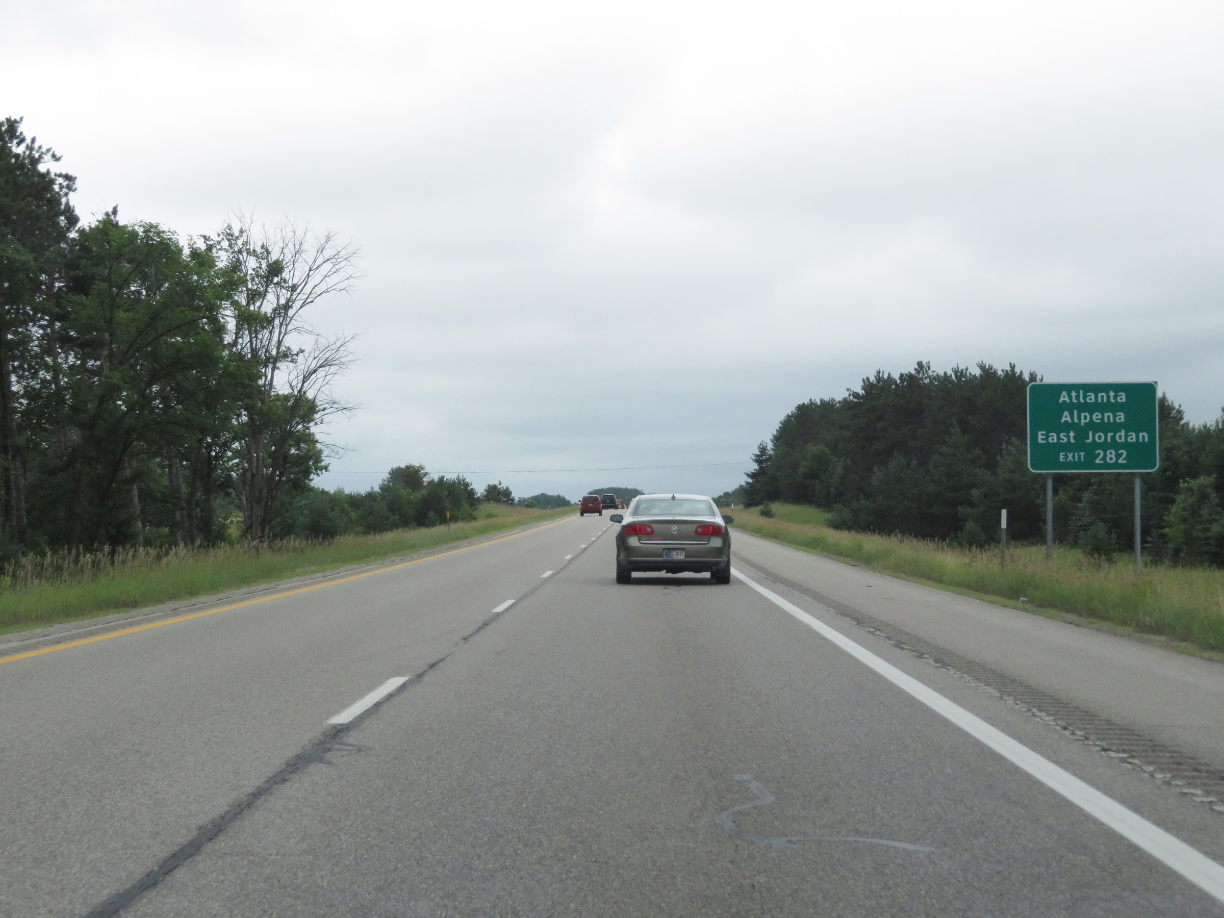 Take Exit 282 to Atlanta, Alpena, and East Jordan. (Photo taken 7/16/17).  |