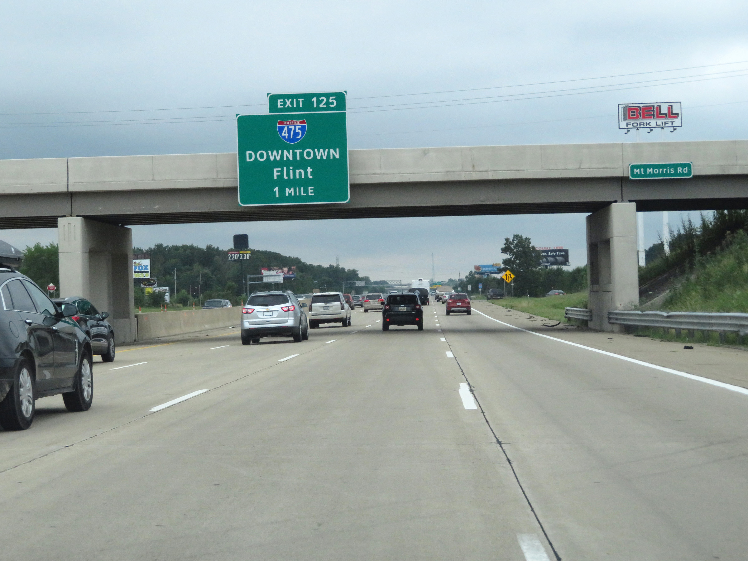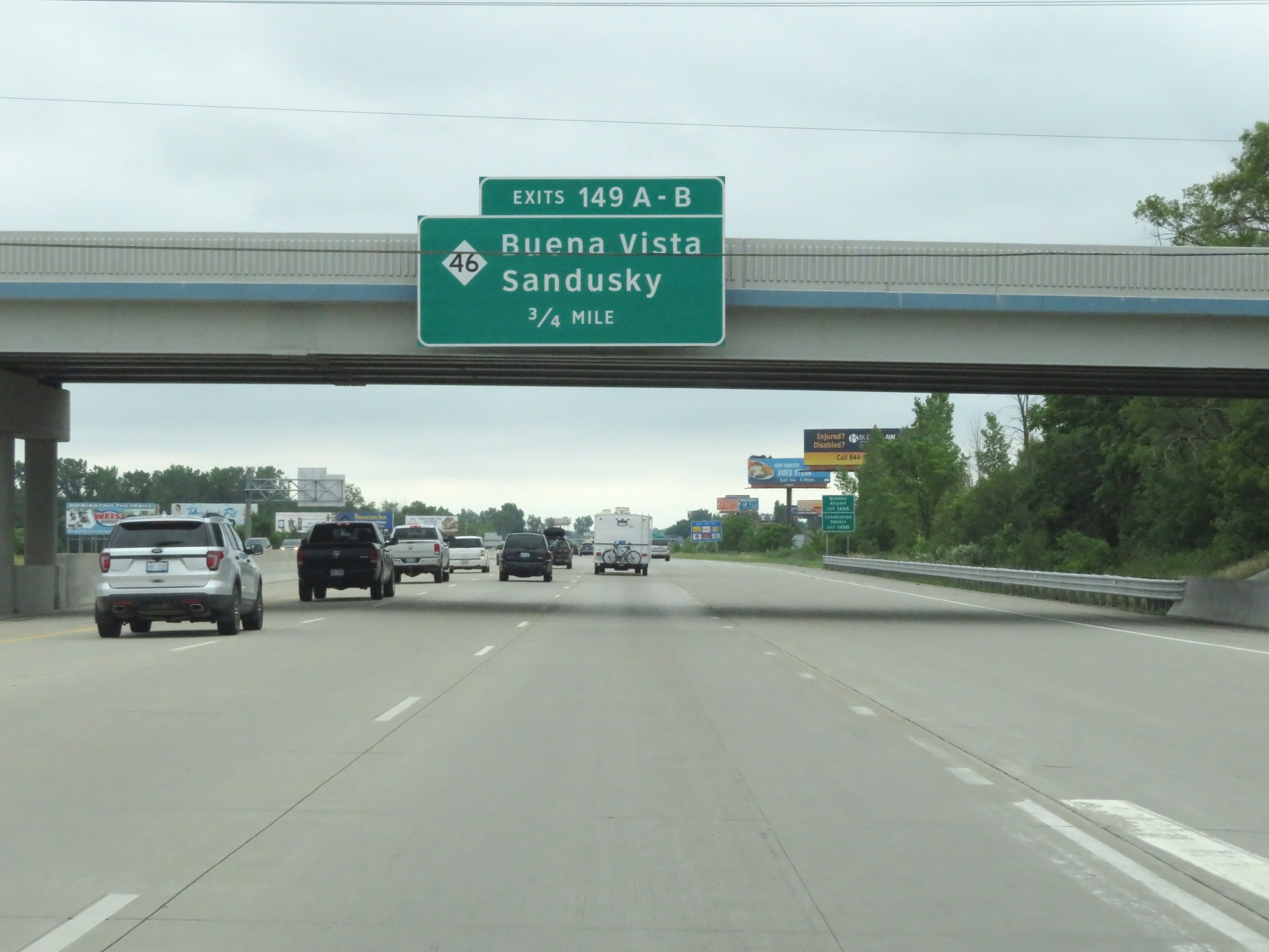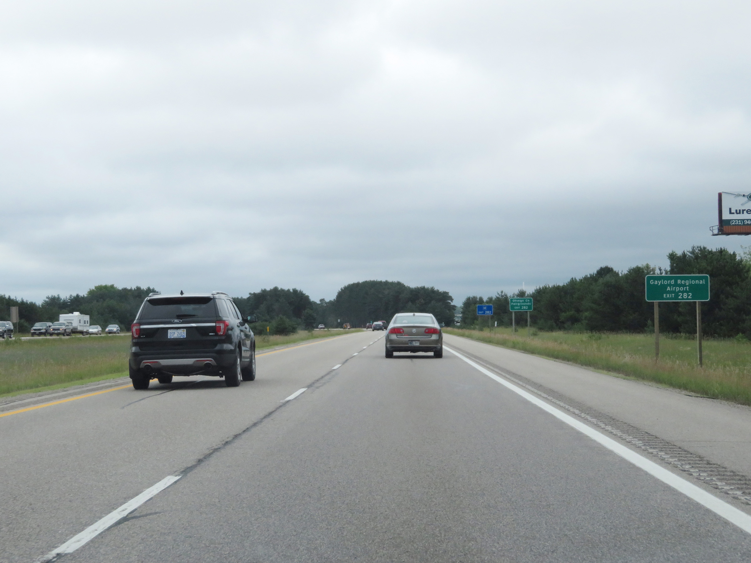 Interstate 75 South at Exit 282: Interstate 75 Business Loop / M-32 - Downtown Gaylord (Photo taken 7/16/17).  |