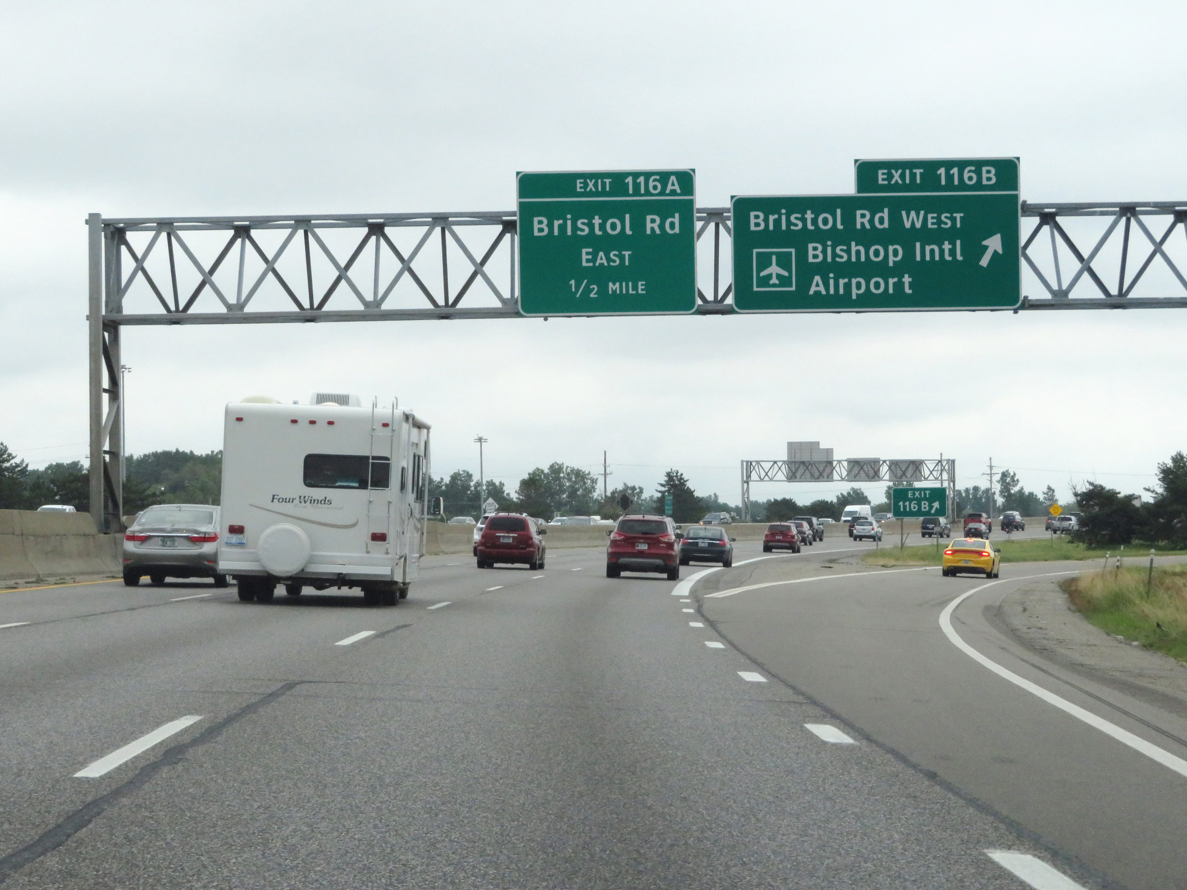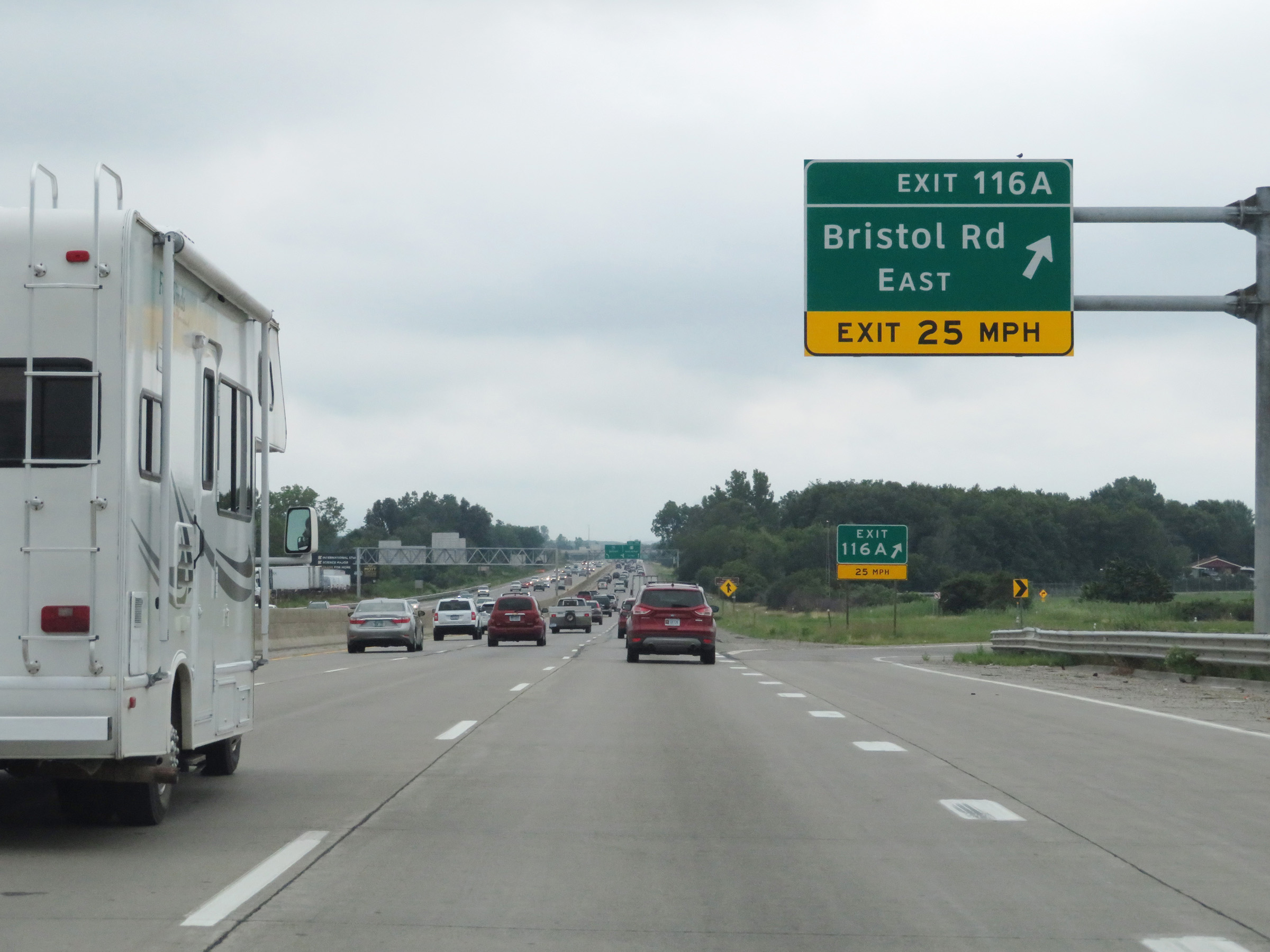 A Michigan Welcome Center / Rest Area exists off Exit 338, 1/4 mile ahead. (Photo taken 7/16/17).  |