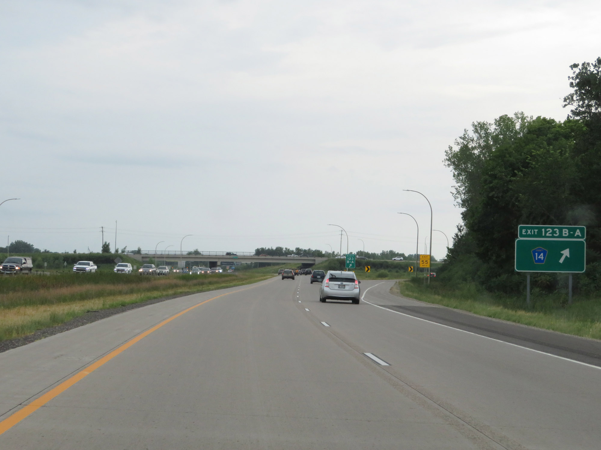 Interstate 35E South at Exits 123B-A: CR 14 (Photo taken 8/7/20). |
