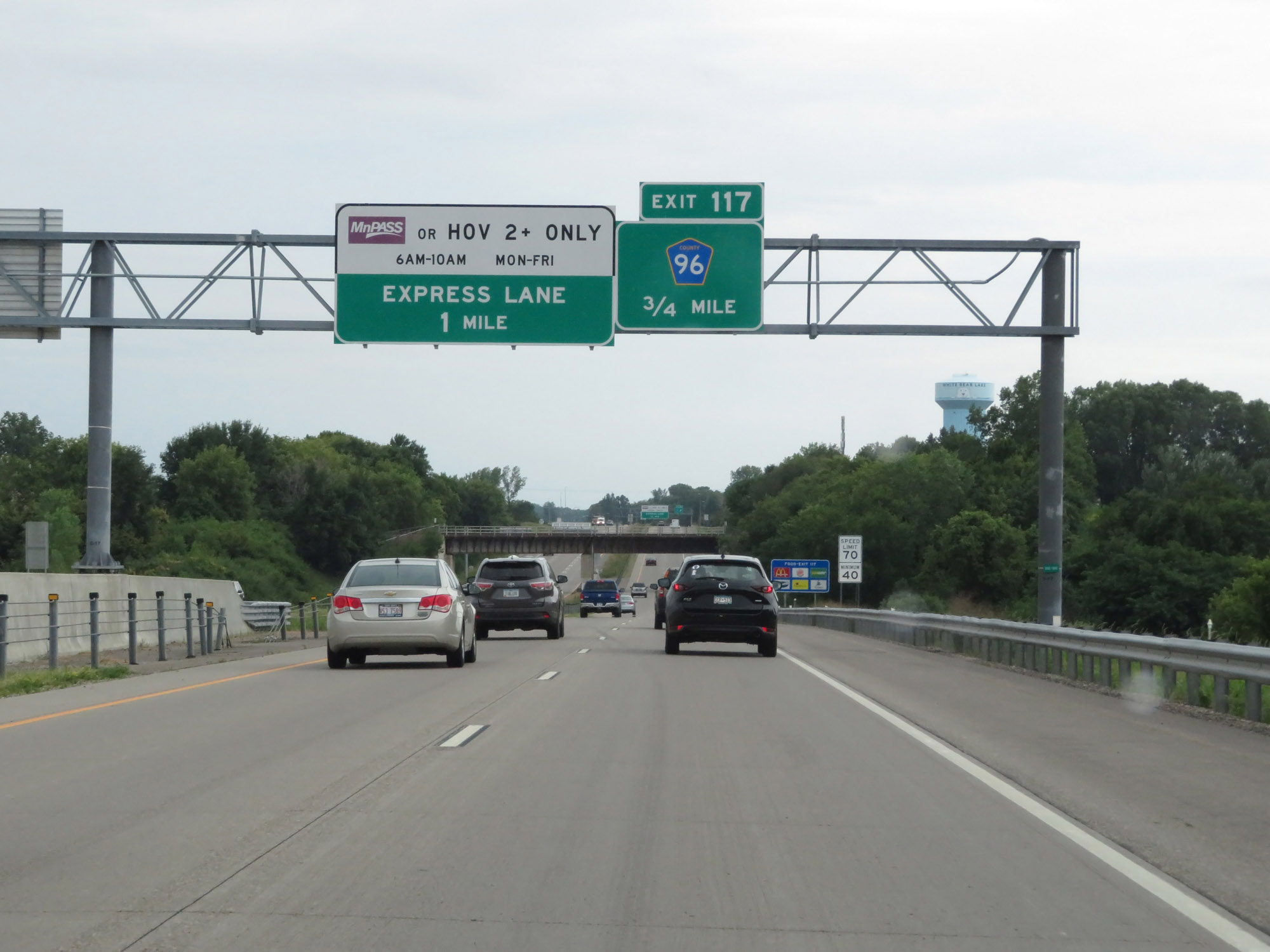 Interstate 35E South at Exit 117: CR 96 (Photo taken 8/7/20). |