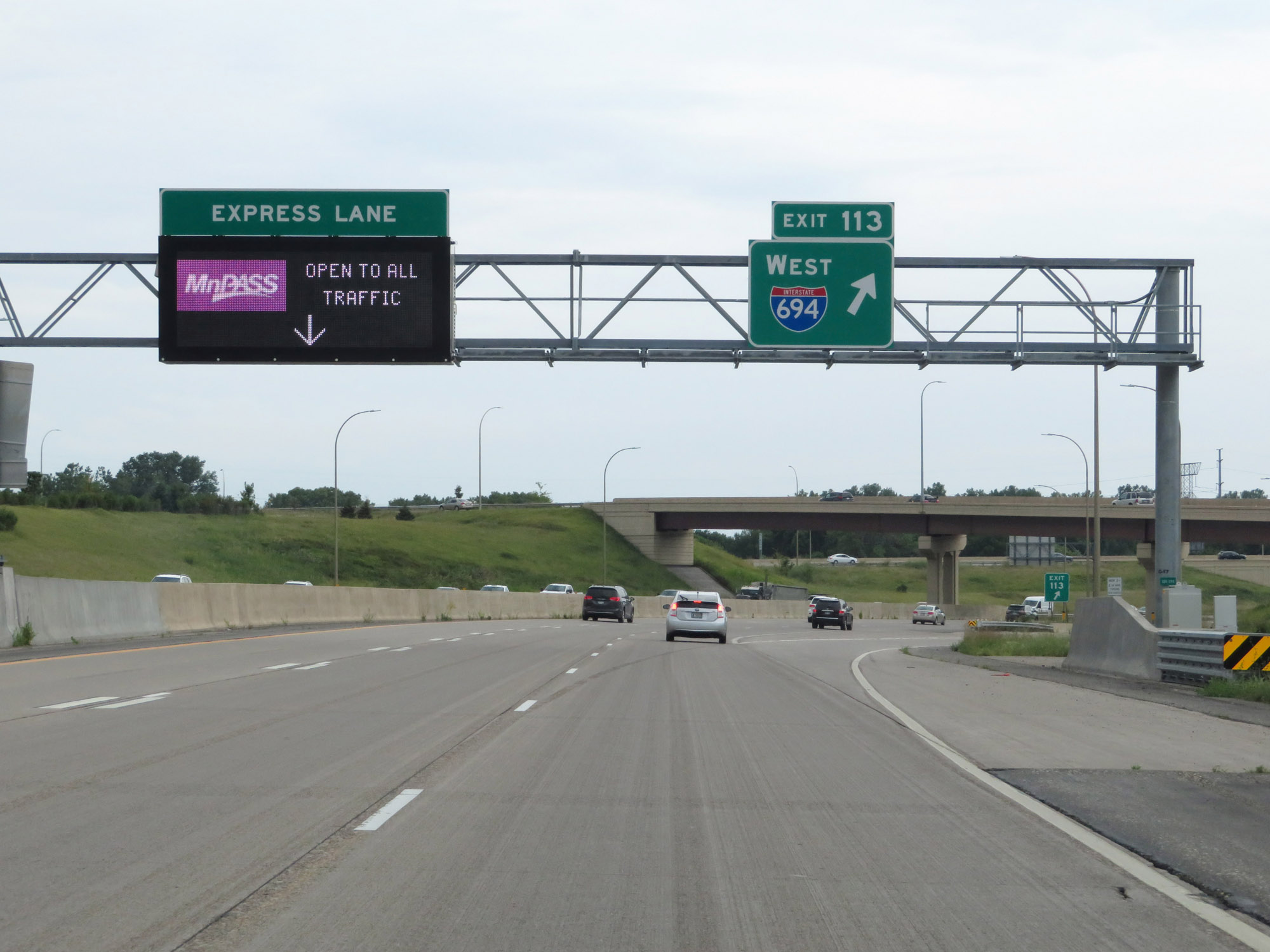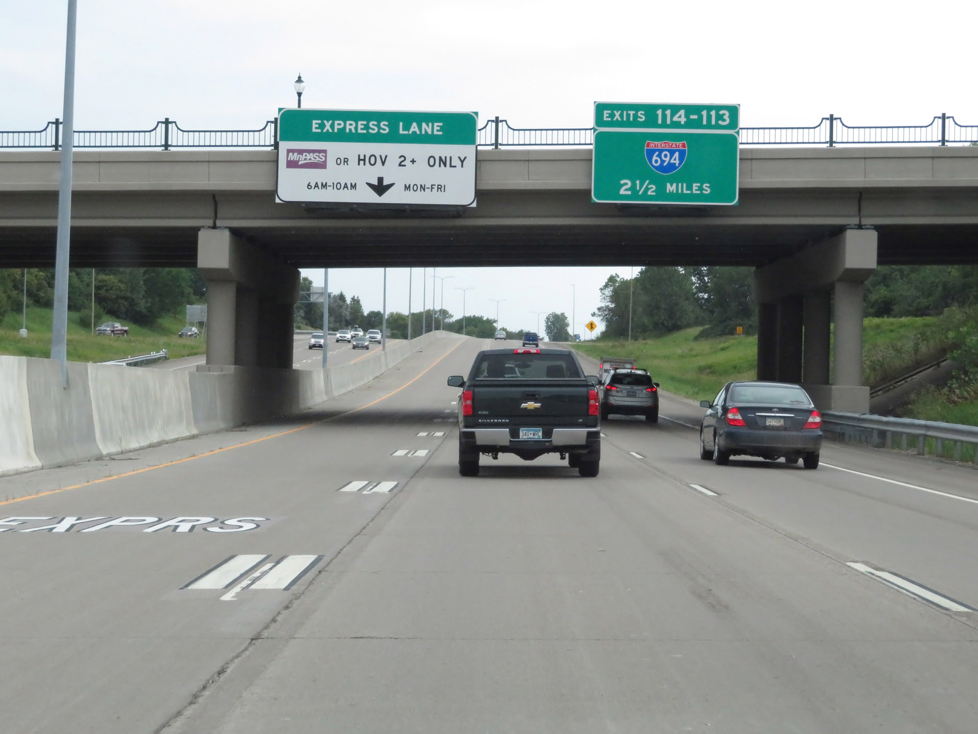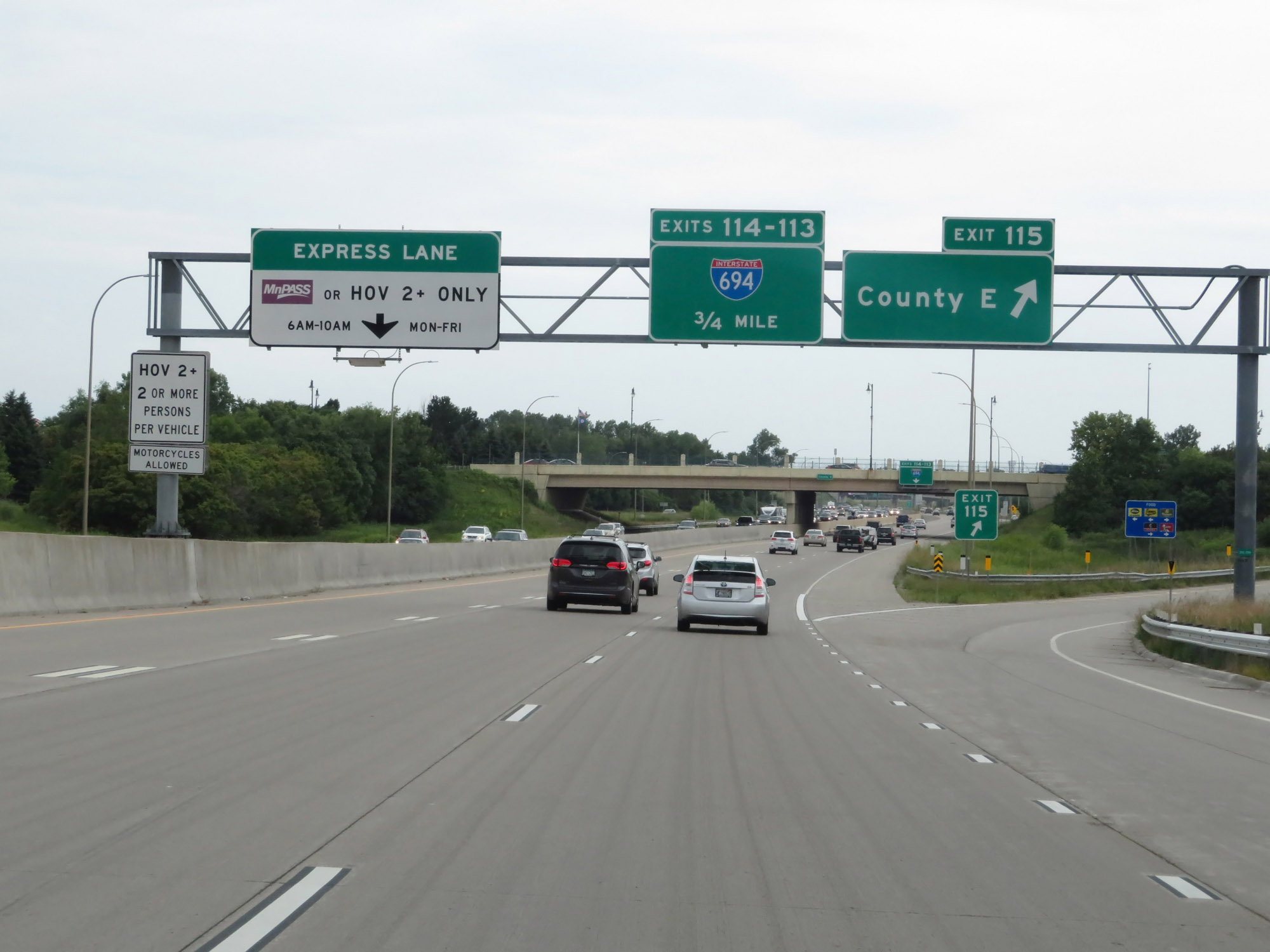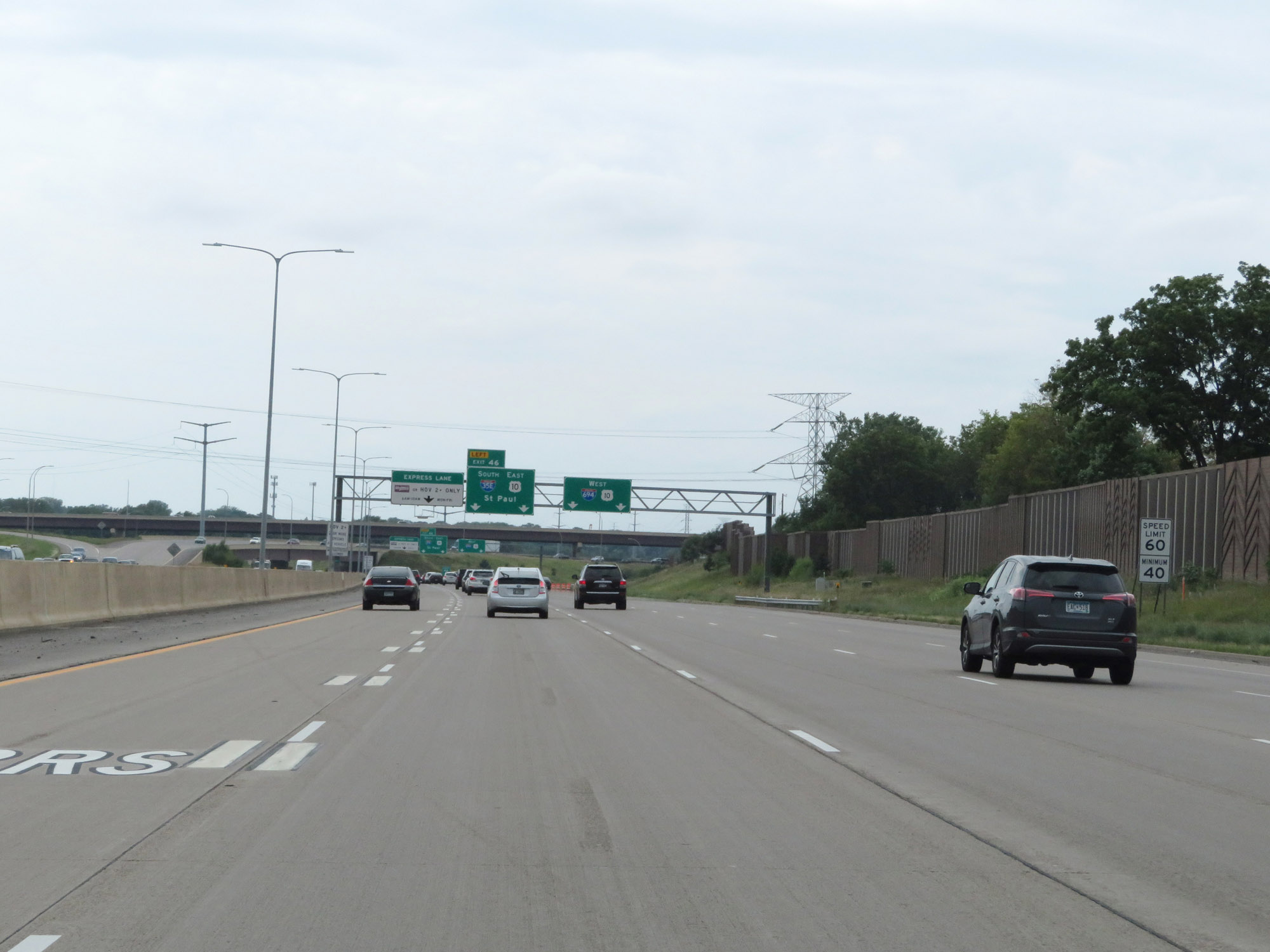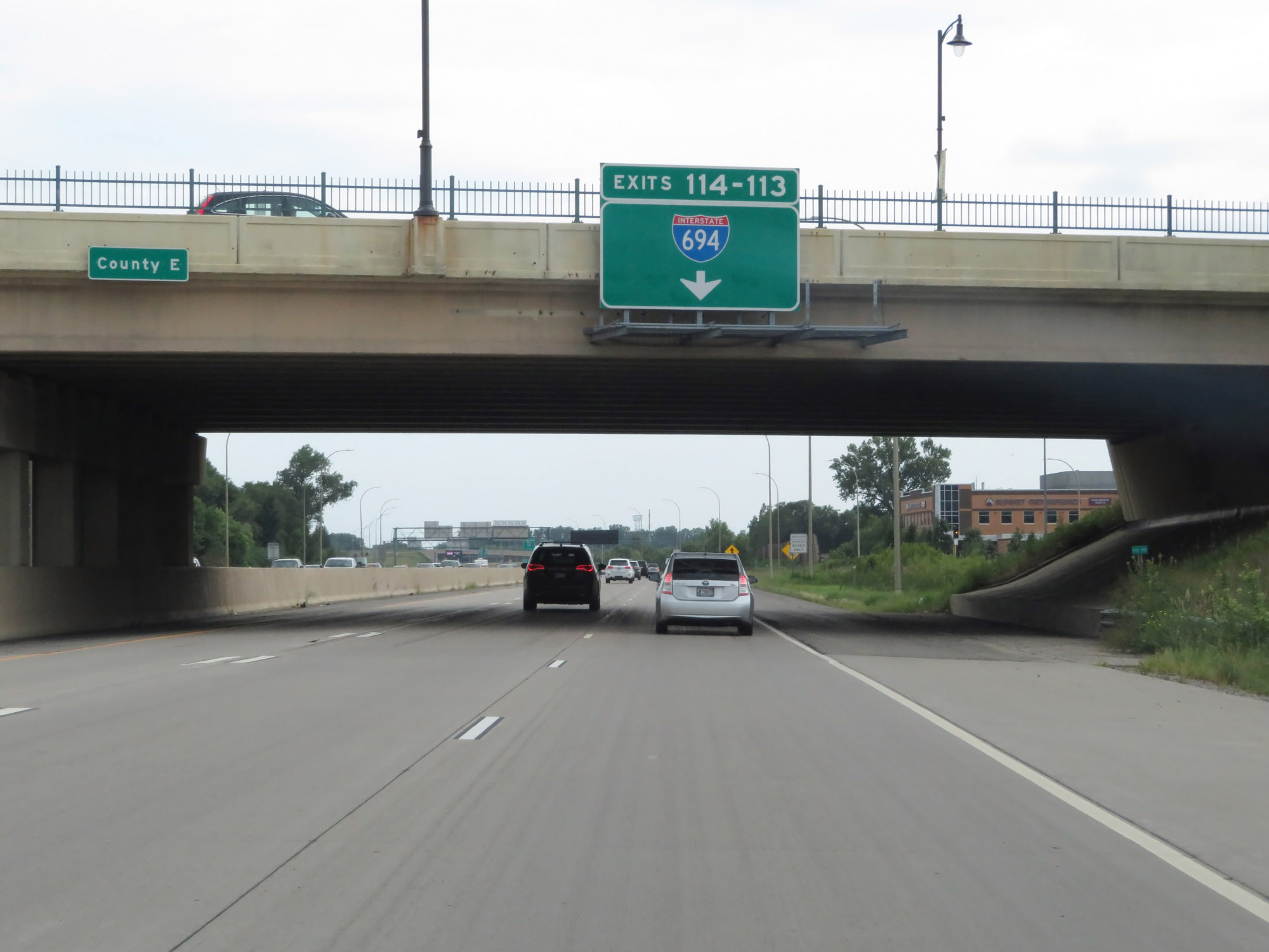 Interstate 35E South at Exit 113: Interstate 694 West (Photo taken 8/7/20). |